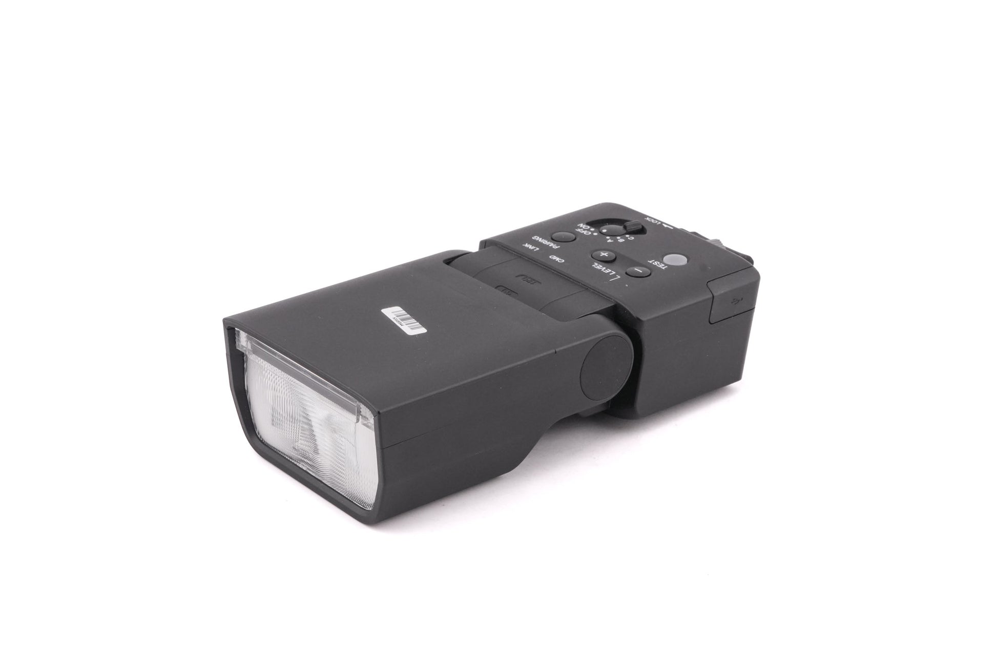 Hotshoe-mounted flash introduced by Sony. Plastic body available in black.