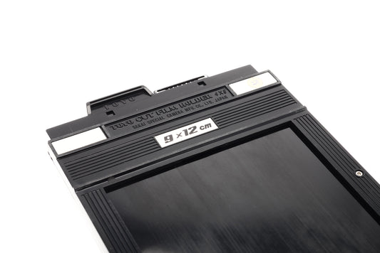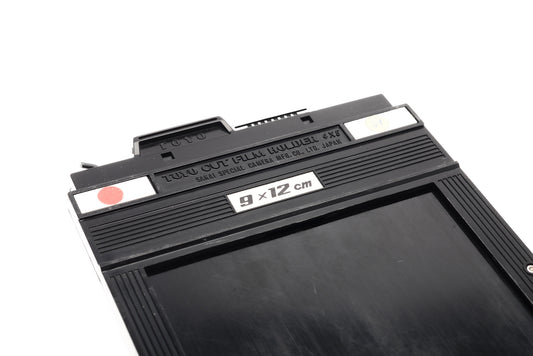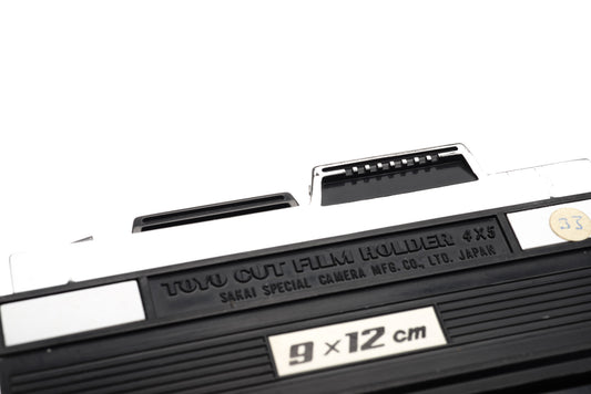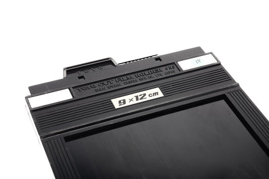 9x12cm sheet film holder made by Toyo. Each holder can hold two sheets of film, one on each side. Plastic body available in black.