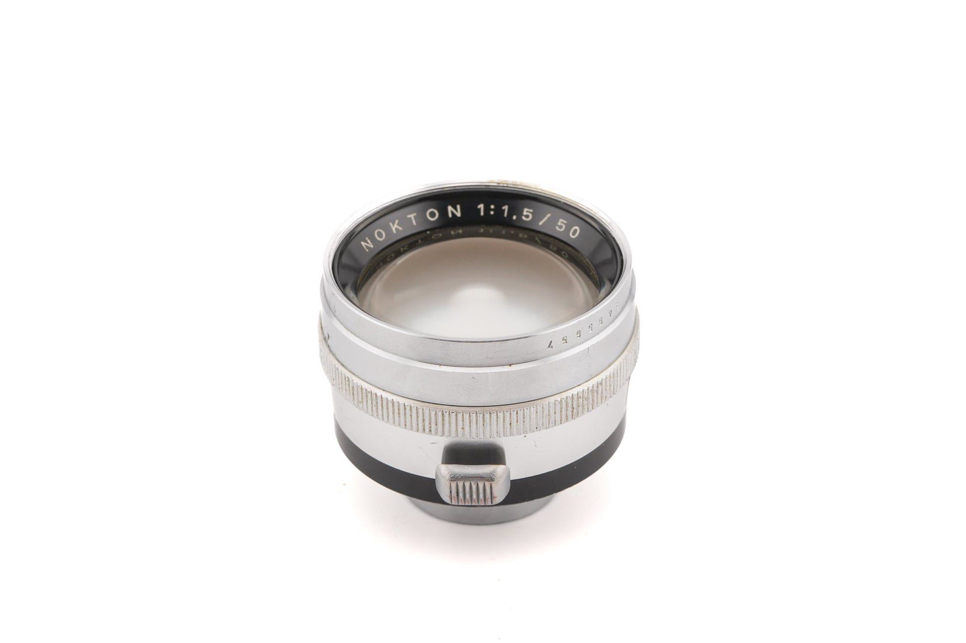 Manual focus normal lens made for the Prominent cameras by Voigtländer. It does not have a focus helicoid as this is controlled by the camera. This lens is a variant of the classic double Gauss design. The Voigtlander 50/1.5 Nokton was one of the most significant fast lenses of the 1950s. Metal body available in silver.