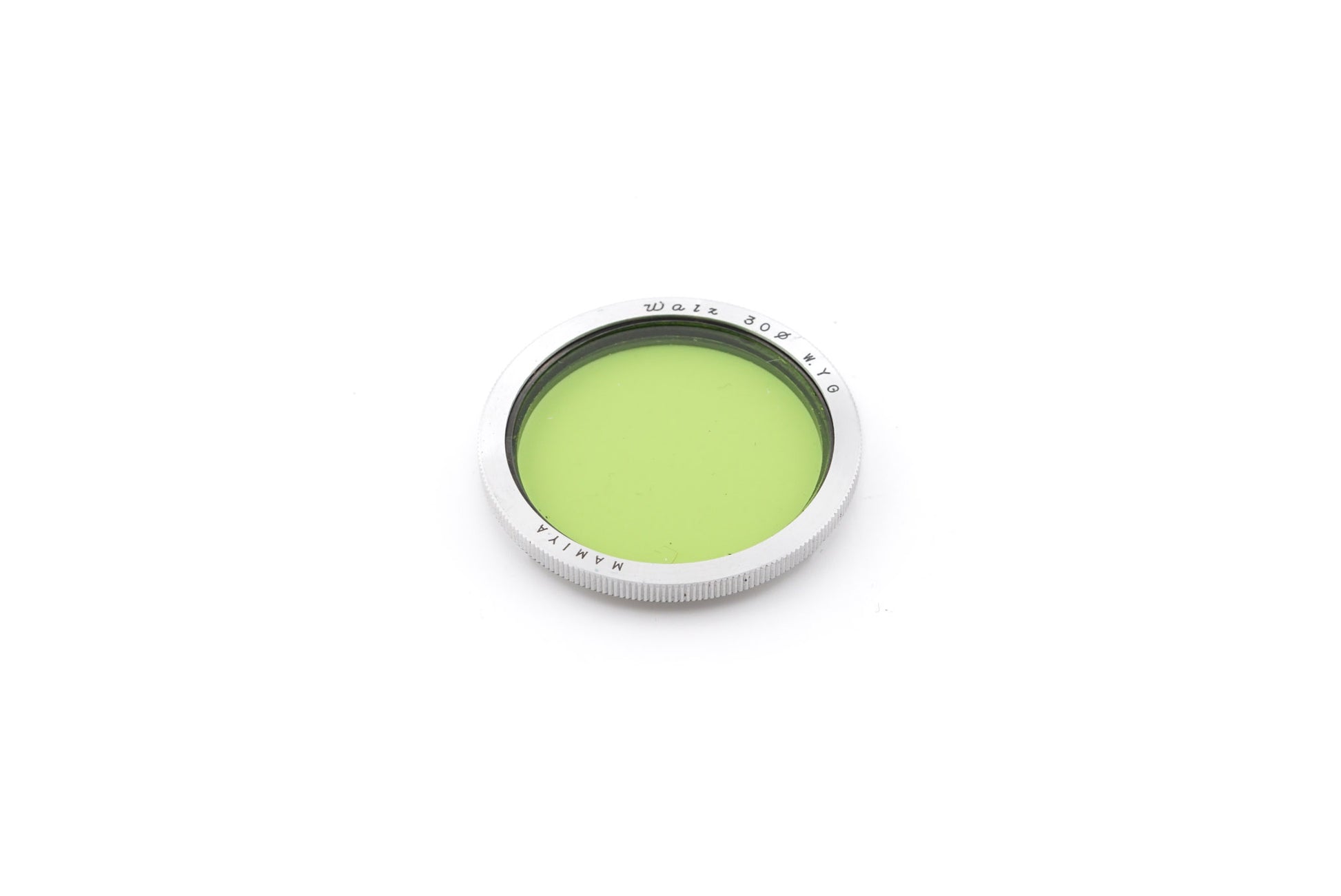 Yellow/green filter made by Walz for TLRs with Bay 1 accessory bayonets. Enhances contrast in black & white photography. Metal body available in black and silver.