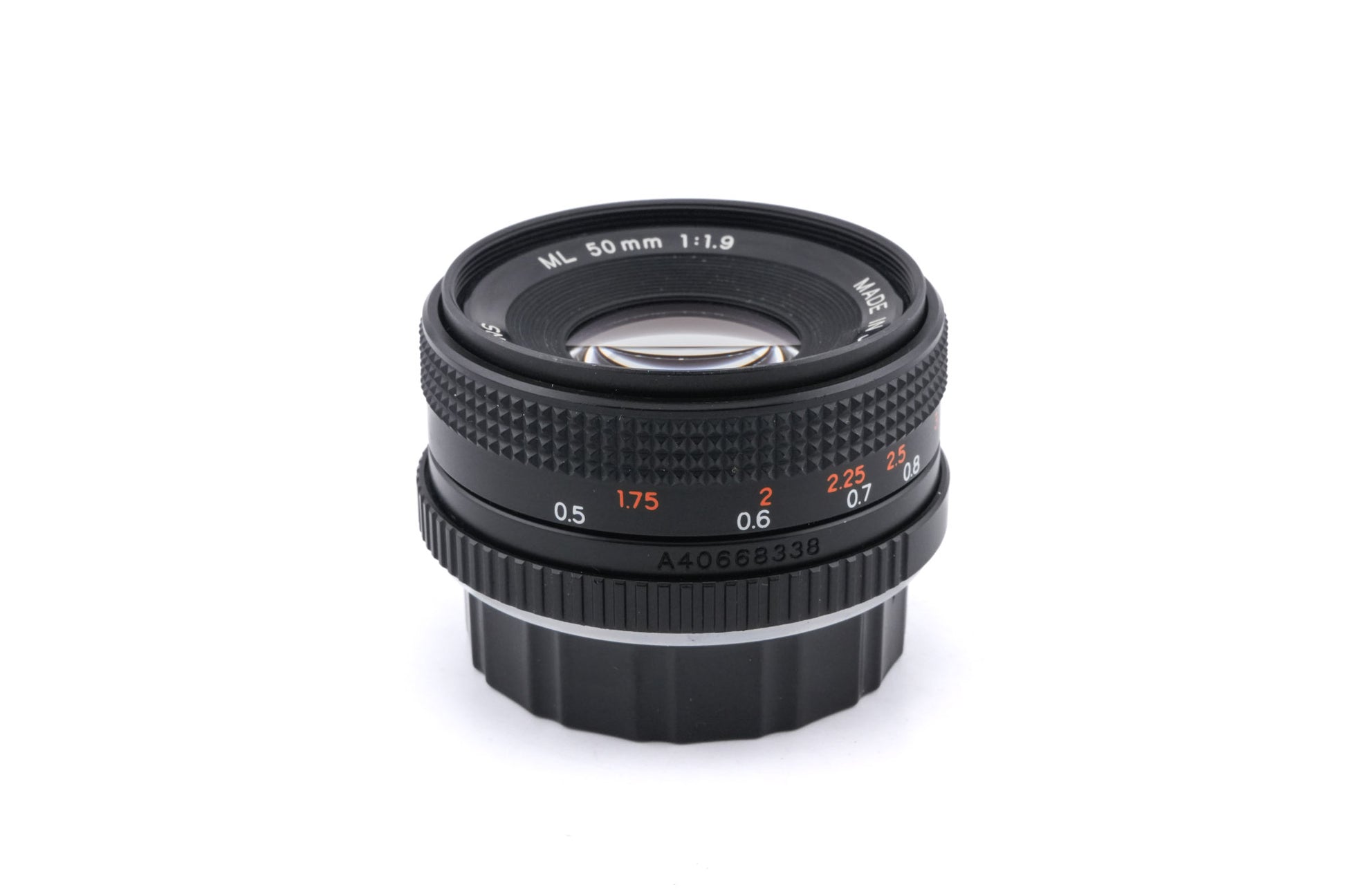 - Yashica 50mm f1.9 ML (6 elements, 5 groups)