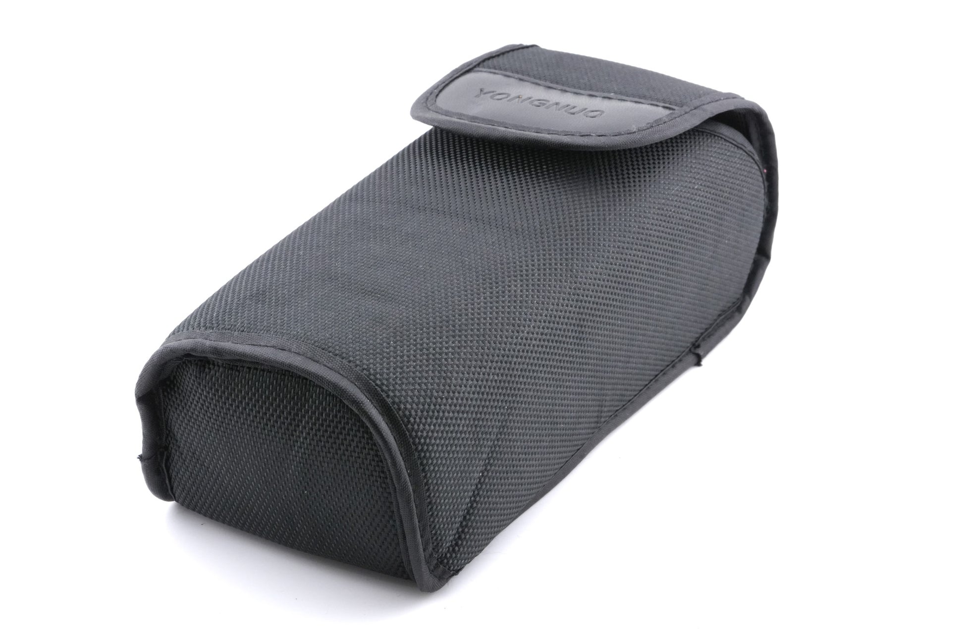 Hotshoe-mounted flash with a single contact pin made by Yongnuo. It has a rear LCD, a swiveling and tilting flash head, adjustable power from full to 1/128, and zoom from 24 to 105mm. Plastic body available in black.