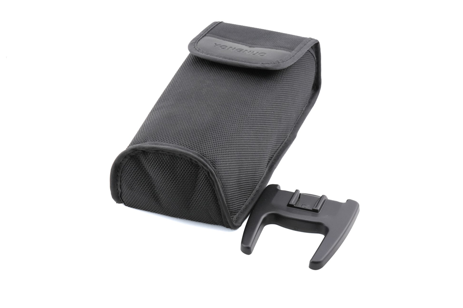 Hotshoe-mounted flash with a single contact pin made by Yongnuo. It has a rear LCD, a swiveling and tilting flash head, adjustable power from full to 1/128, and zoom from 24 to 105mm. Plastic body available in black.