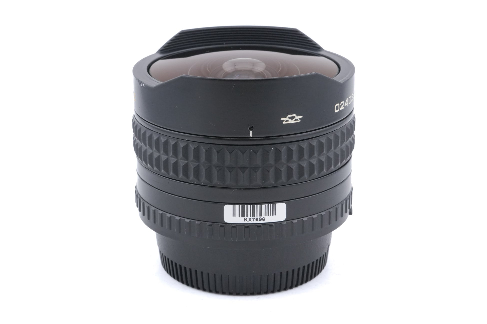 Manual focus fisheye lens made for Nikon F mount SLRs by Zenit. It has no bunny ear metering prongs or AI-S indent but does have the AI ridge. It will meter properly on most (excluding F, F2, and Nikkormats) manual Nikon cameras but won't work with the advanced program modes of later models. Metal body available in black.