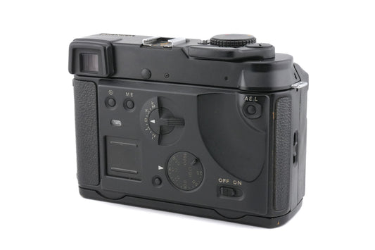 Manual focus 120 rangefinder camera made by Zenza Bronica from 2000 - 2005. Uses a proprietary lens mount with leaf shutter lenses and has a built-in darkslide for mid-roll lens switches. Has a built-in non TTL centre-weighted light meter. Offers exposure compensation, multi exposure, 120 to 220 film switch and a self timer. Plastic/metal body available in black.