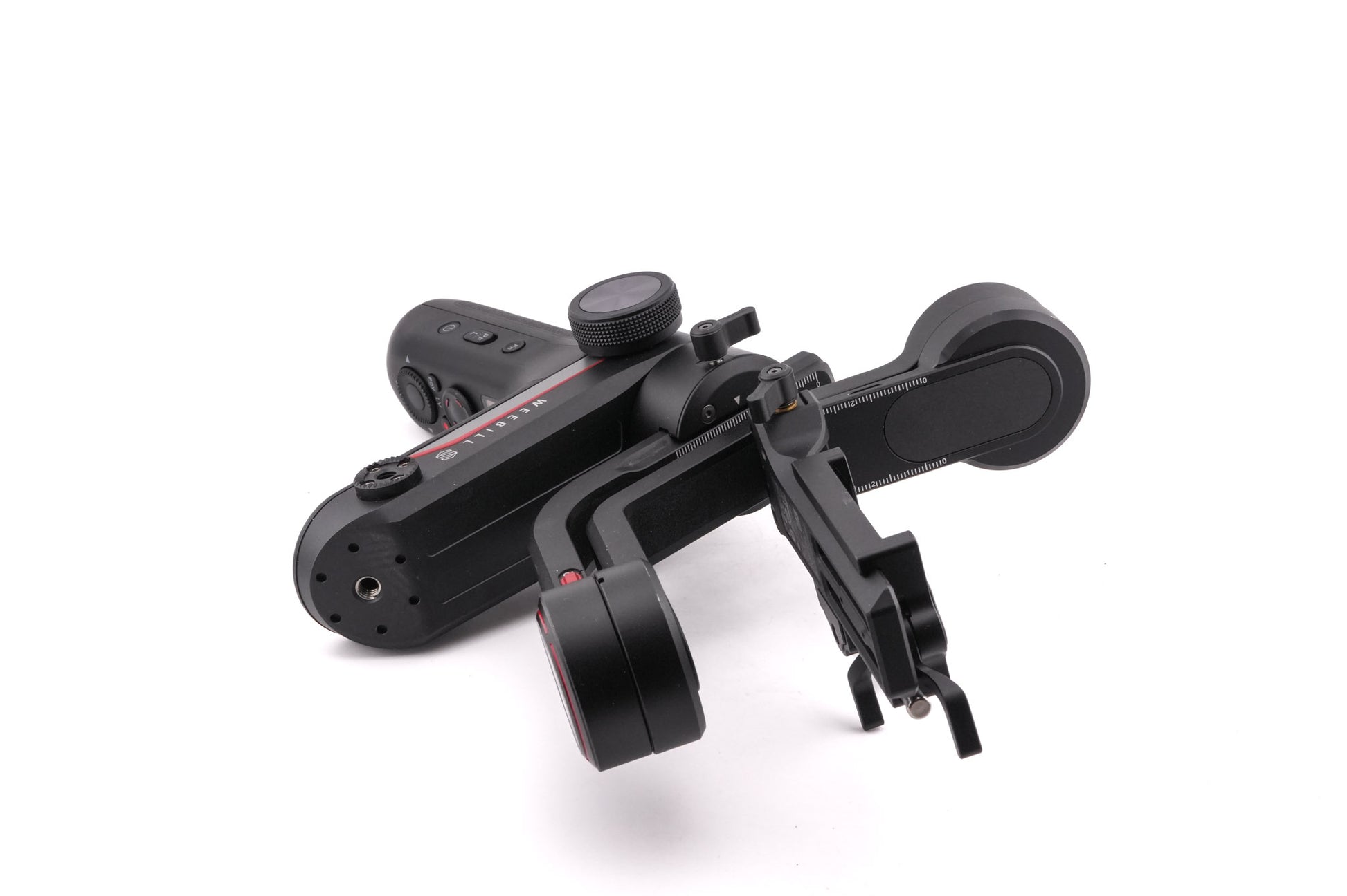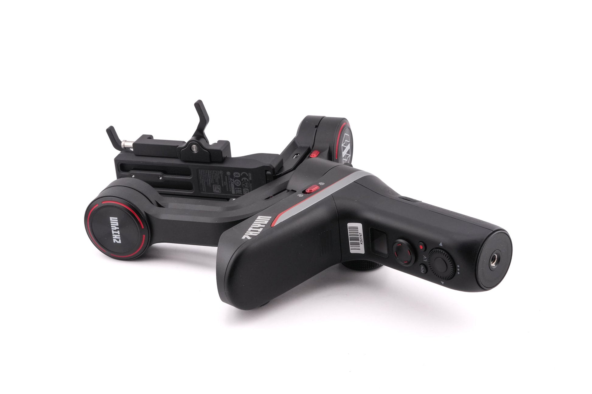 Gimbal camera stabilizer made by Zhiyun for digital cameras. Stabilizes the camera on three different axes. Metal body available in black.
