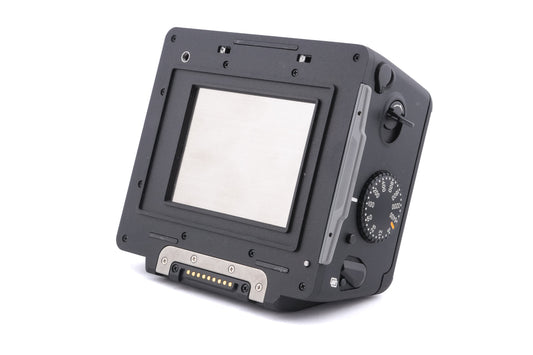 120 film back made for 645 mount 120 SLRs by Contax. It works with both 120 and 220 film. Plastic/metal body available in black.