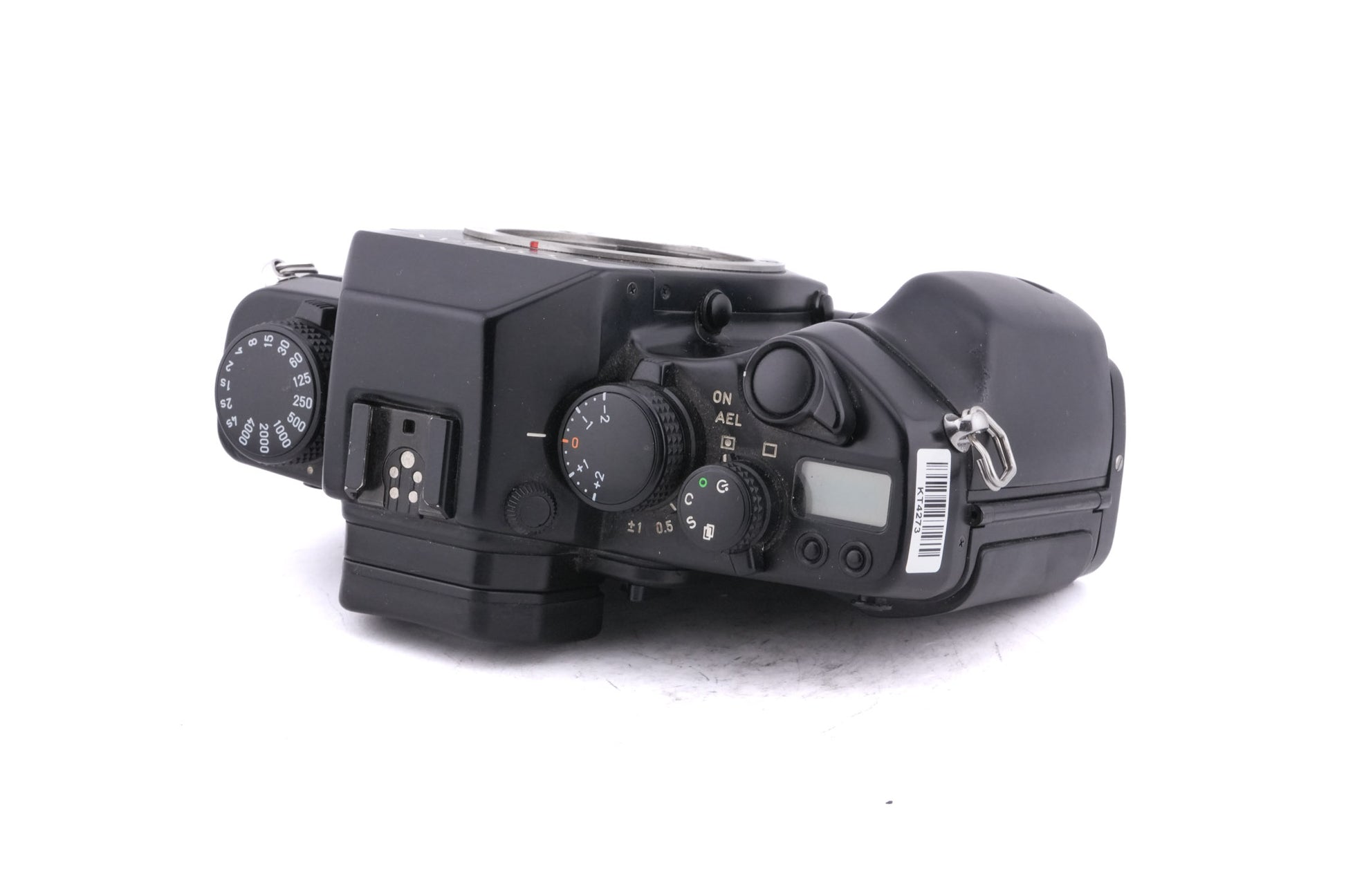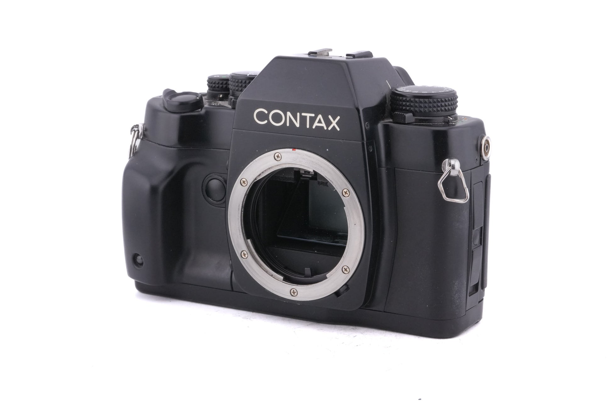 Manual focus Contax/Yashica mount 35mm SLR released by Kyocera Contax in 1984. Metal body available in black.