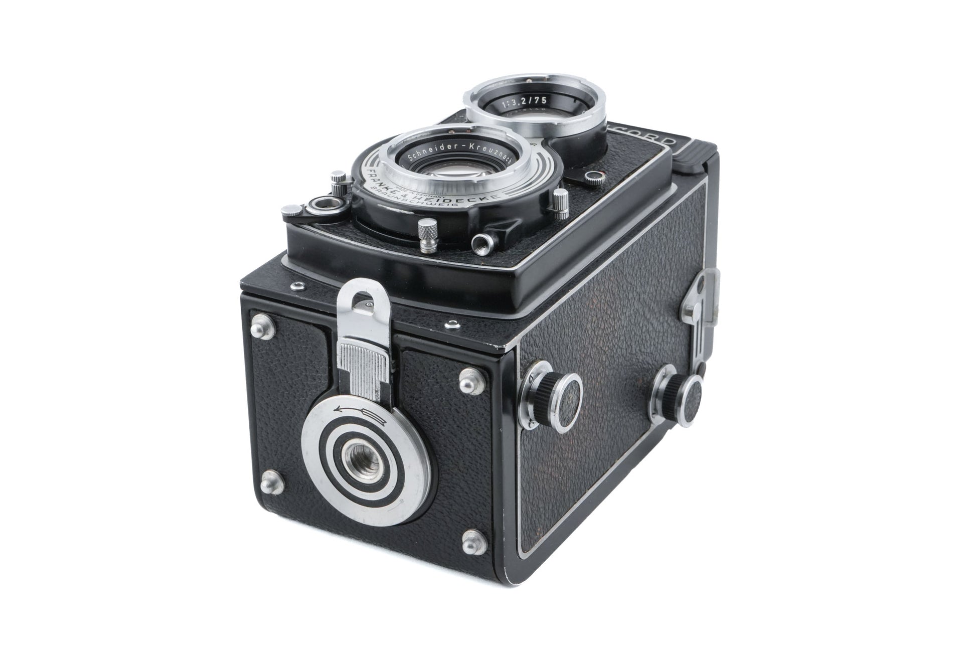 Manual focus 120 TLR camera released by Franke & Heidecke in 1954. About 84,000 were made. It has a focus knob on the right side instead of the left like later models. The exposure guide on the back changed to pictures instead of text to suit all languages. Metal body available in black & silver.