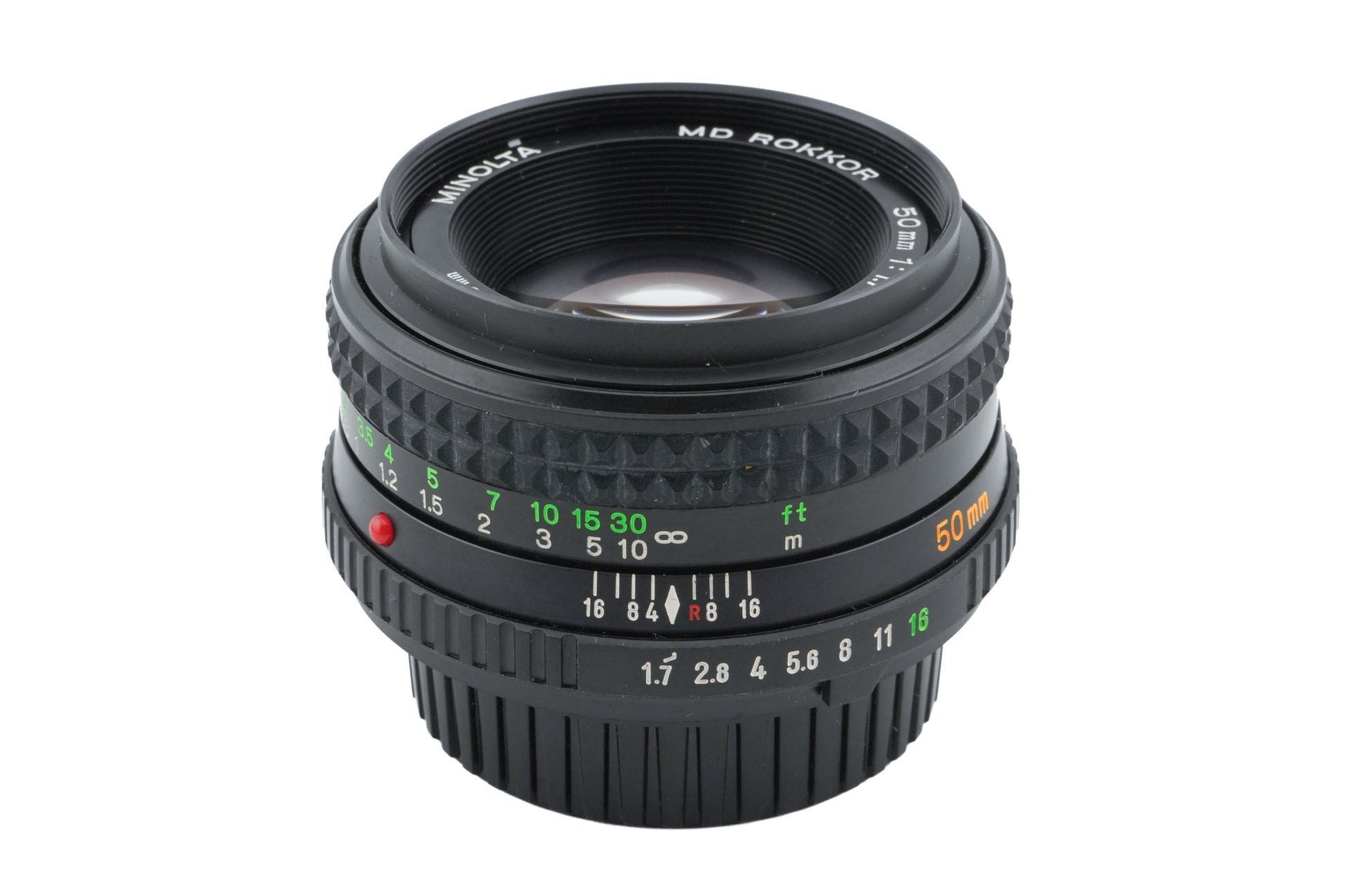 - Minolta 50mm f1.7 MD Rokkor (6 elements, 5 groups)