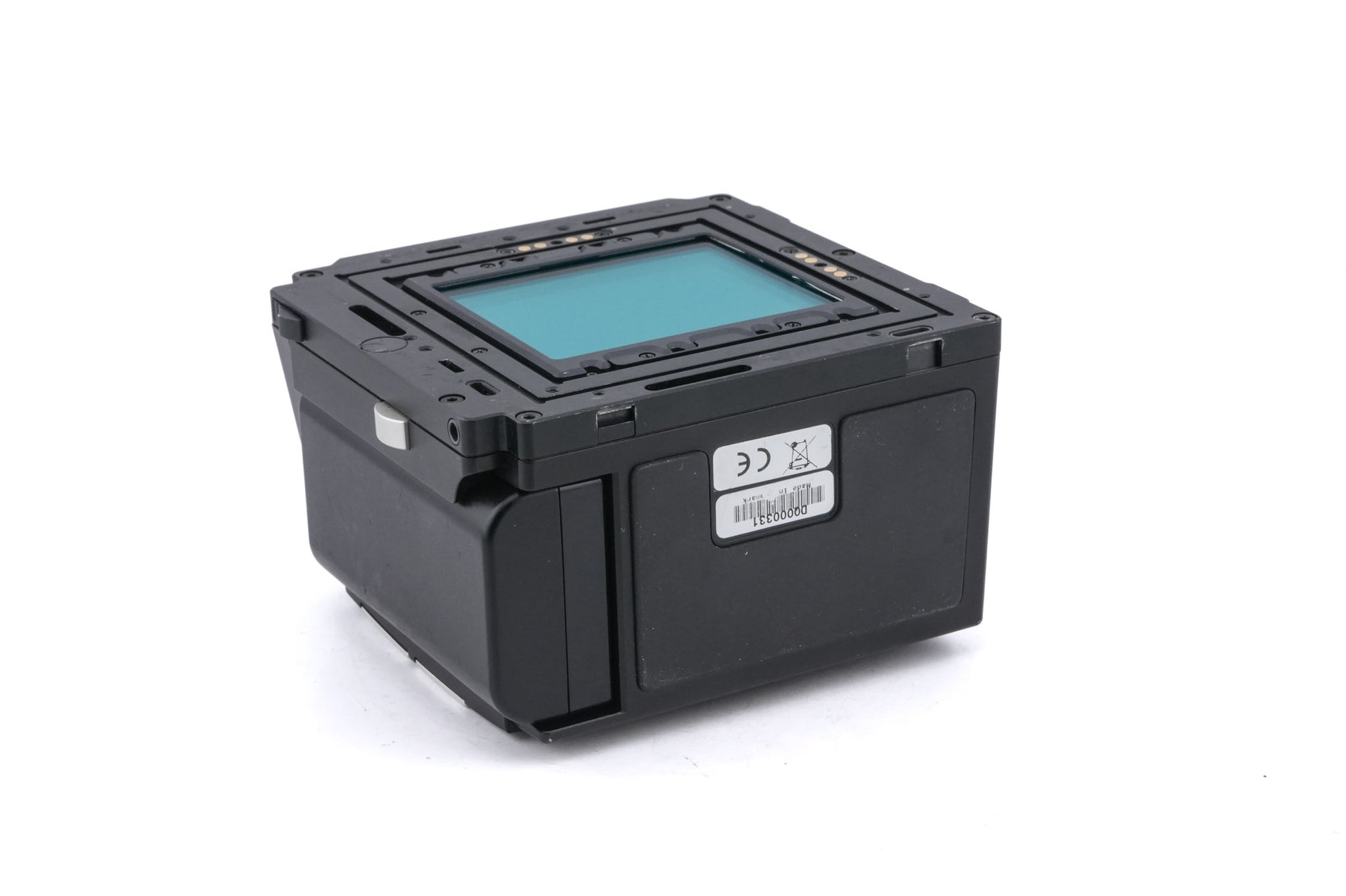 Digital back made for Hasselblad V series 120 SLRs by Phase One. Metal body available in black.