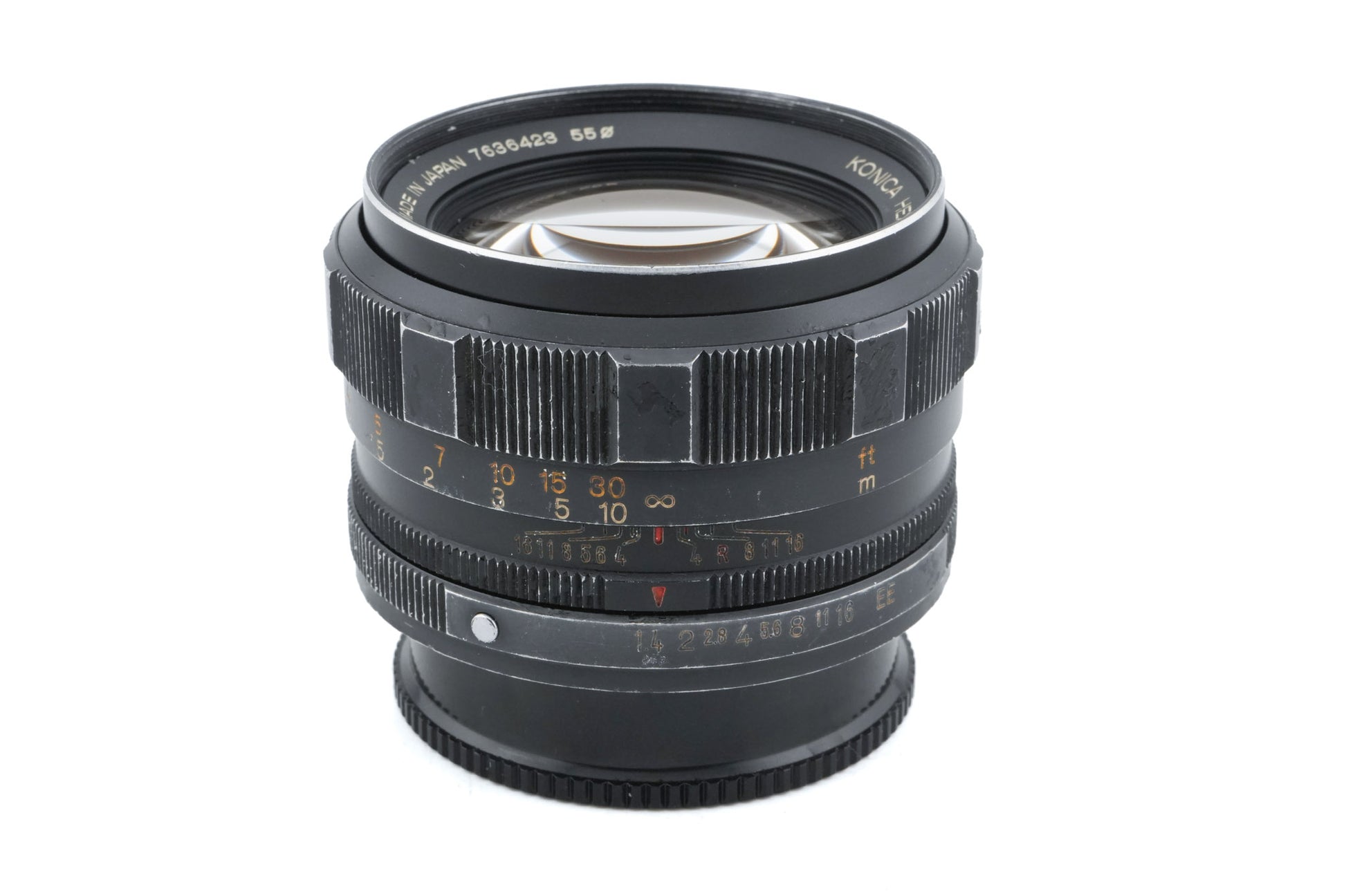 Normal lens for Konica AR 35mm SLRs, intended for low light photography. Slightly longer than the standard 50mm.