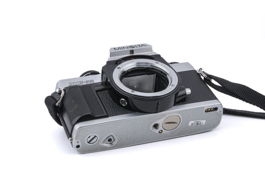 Manual focus MD-mount 35mm SLR camera released by Minolta in 1981. It is also known as the X-70 in Japan. Metal and plastic body available in silver.