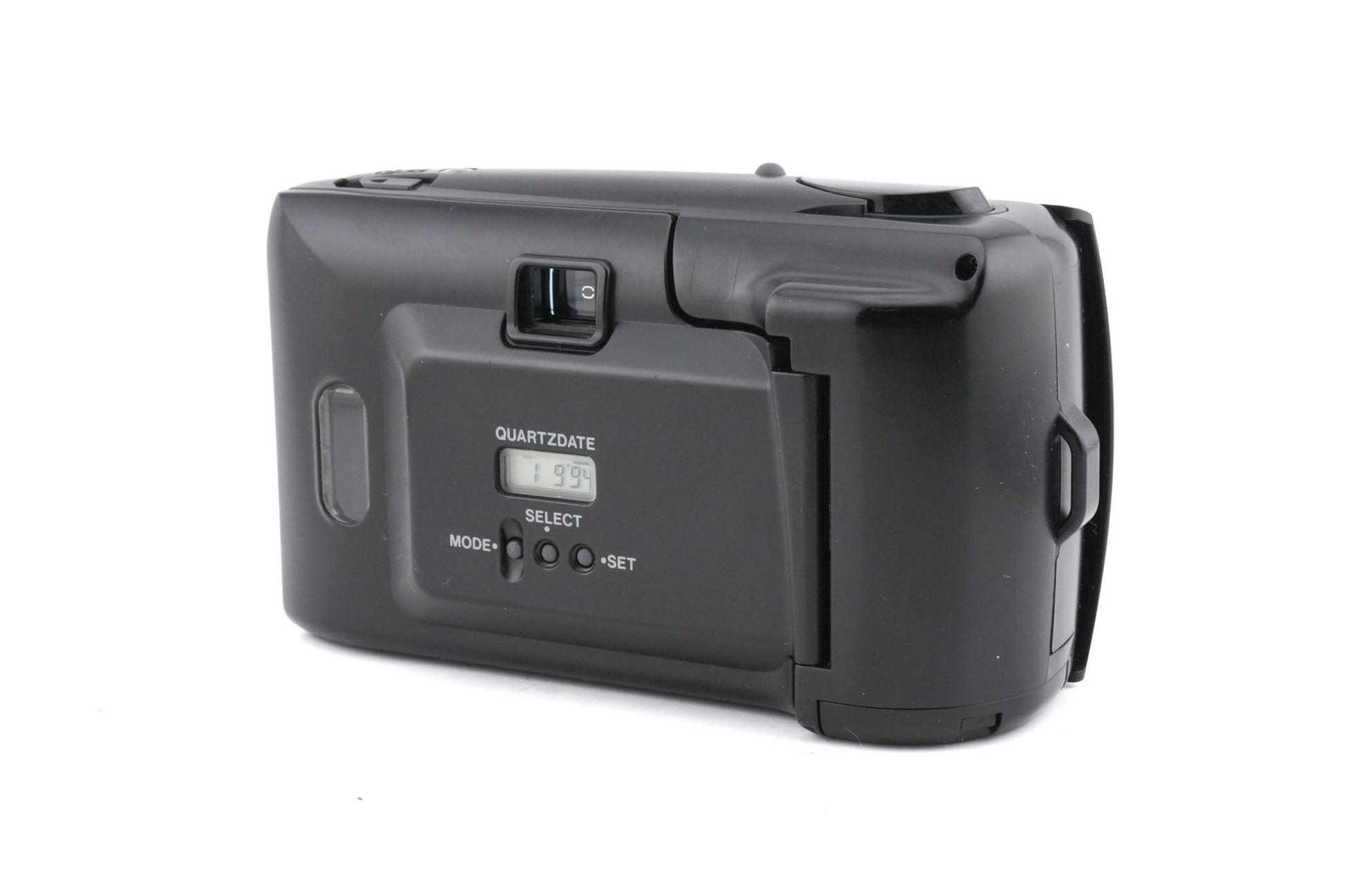 Autofocus 35mm point-and-shoot camera made by Olympus introduced in 1996. it has fully automatic controls with automatic film advance and rewind. It has a built-in flash and a self-timer. Plastic body available in black.
