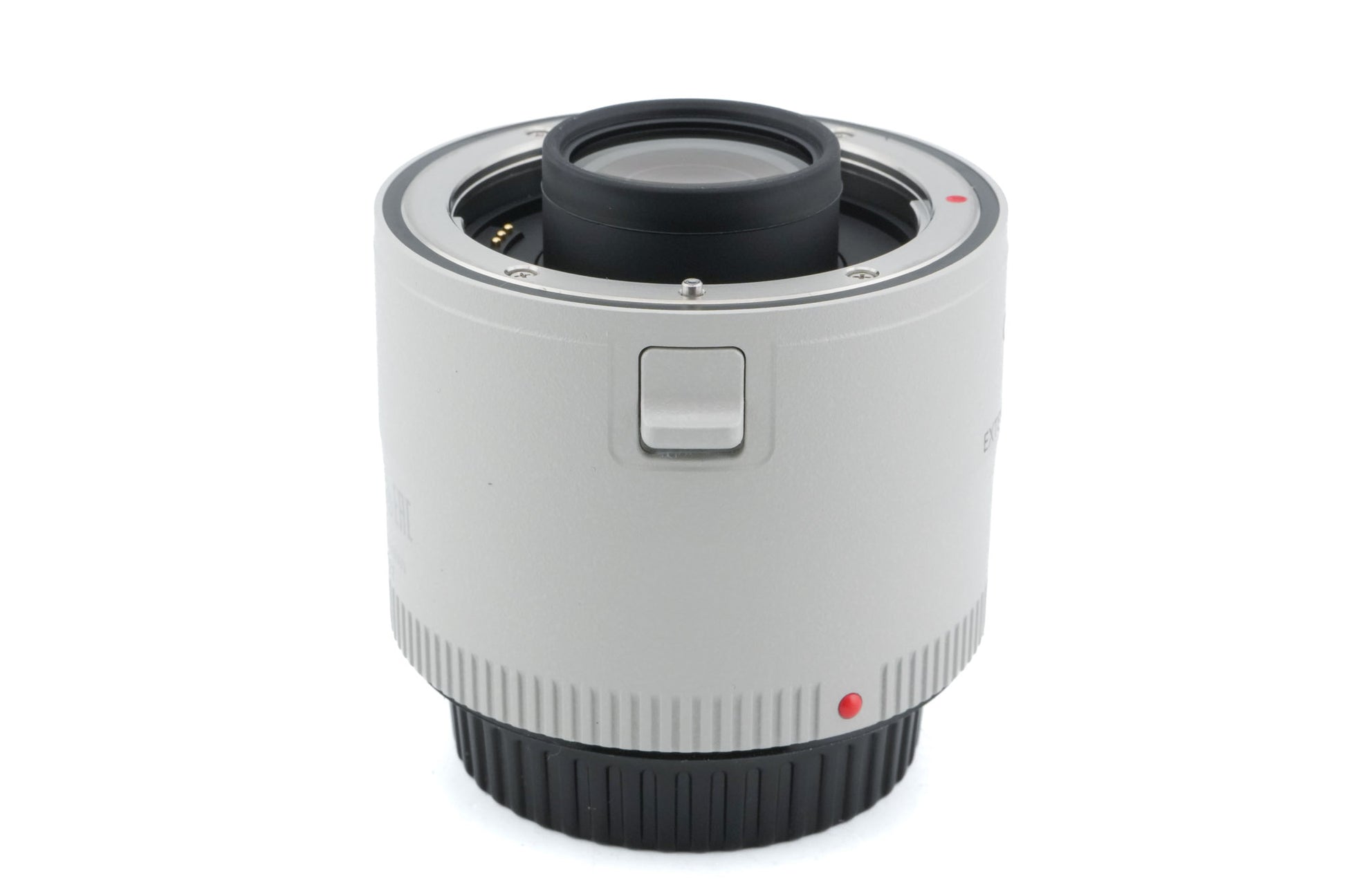 Teleconverter made for EF-mount SLRs by Canon. It works with most L-series lenses and doubles the focal length of a lens at the cost of 2 stops of light transmission. Autofocus only works with lenses that have an aperture of f2.8 or wider. Metal and plastic body available in black and gray.