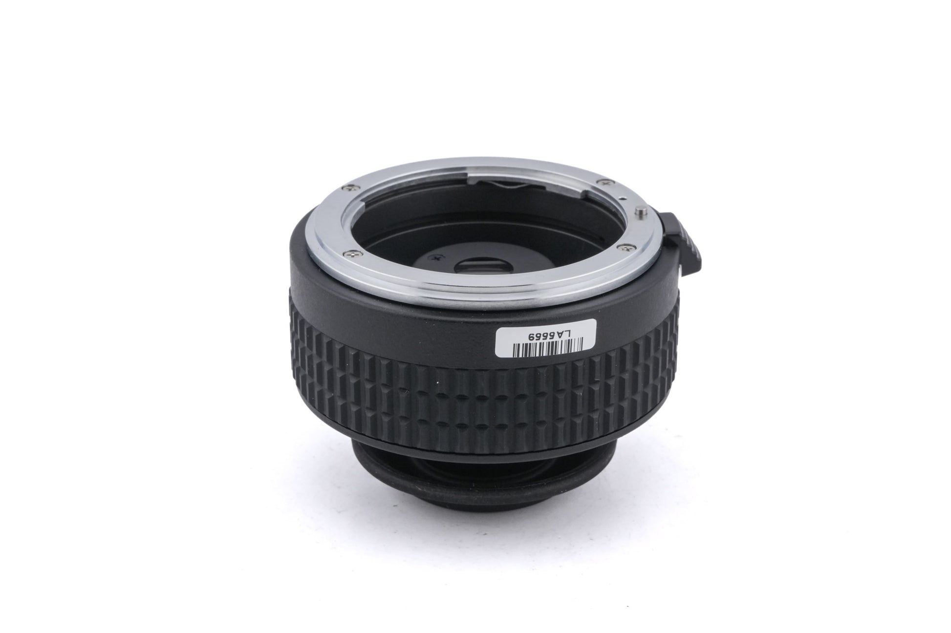 Lens scope converter made by Nikon. It is used to turn Nikon lenses into scopes. It will not work with newer G lenses. A 50mm lens becomes a 5x power telescope, and so on. Metal and plastic body available in black.