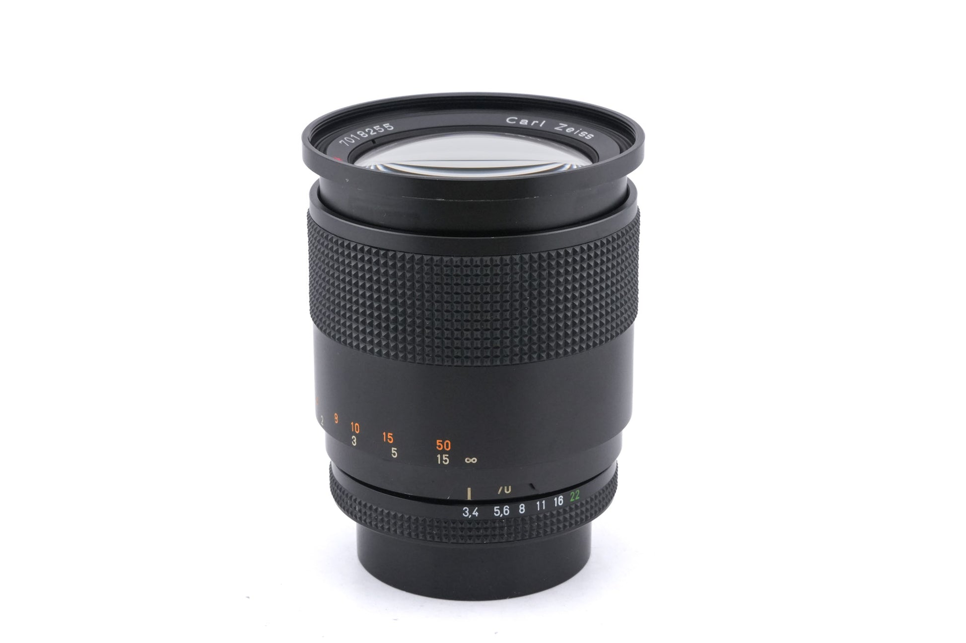 Manual focus normal push/pull zoom lens made for Contax/Yashica mount 35mm SLR cameras introduced by Carl Zeiss in 1984. This lens is of the newer MM variant that supports shutter priority and program modes. Metal body available in black.