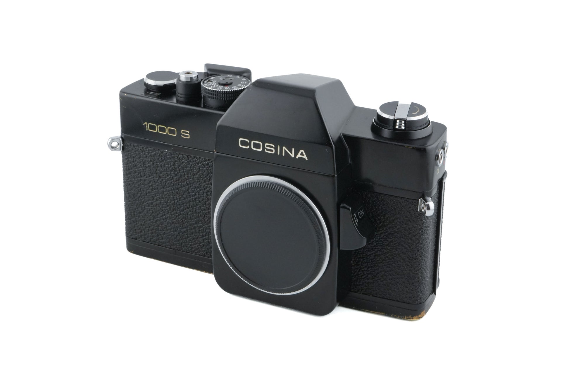 Manual focus 35mm M42-mount SLR camera made by Cosina. Features of the camera include an exposure meter and X- and M-flash sync ports. Exposure meter powered by E-675 mercury battery. Metal body available in silver.