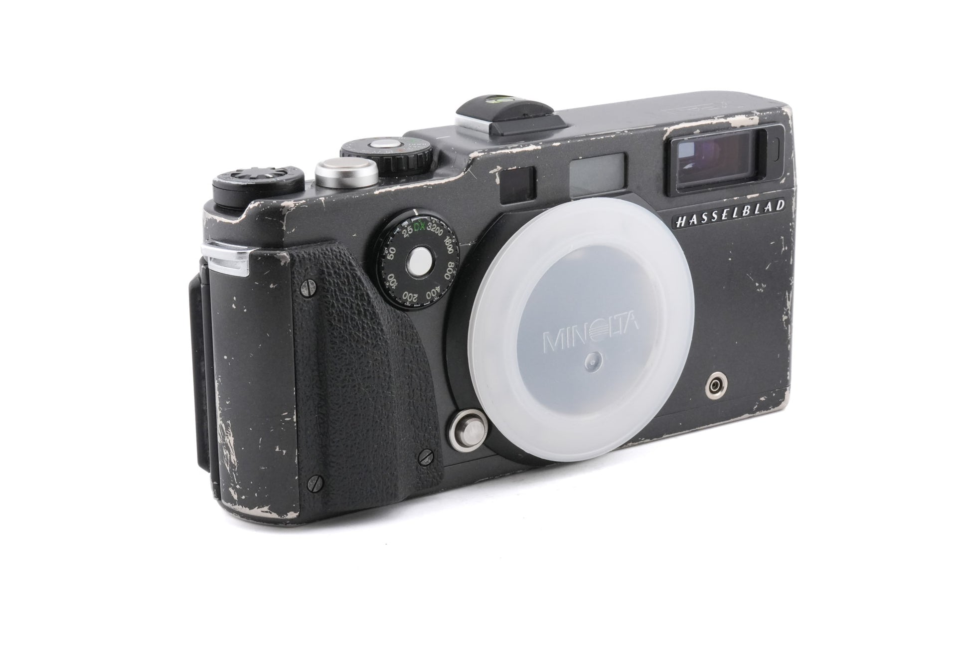 Manual focus XPan mount 35mm rangefinder camera released by Hasselblad in 1998. This camera was co-developed with Fujifilm who released it as the TX-1. It takes panoramic photos with an aspect ratio of 24x65mm and can switch to take normal 24x36mm images as well. The XPan was voted as the "European Profesional Camera of the Year 1999-2000". Aluminum/titanium body available in gray.