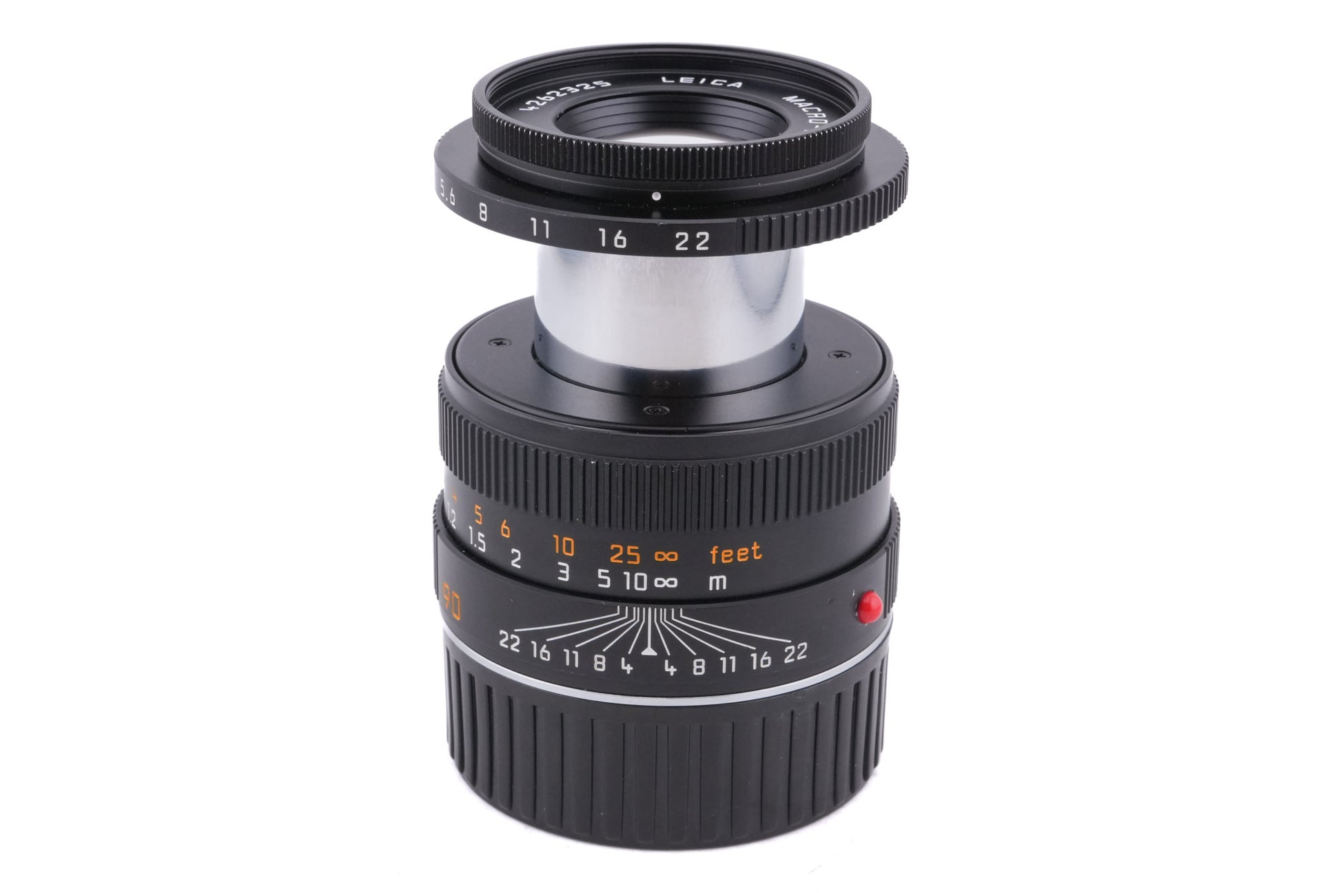 Manual focus macro lens made for M-mount rangefinder cameras introduced by Leica in 2014. This is the second version of the lens that can be locked in the collapsed position. A dedicated Macro Adapter is available, which provides the lens with a 1:2 reproduction ratio. Metal body available in black (11670).