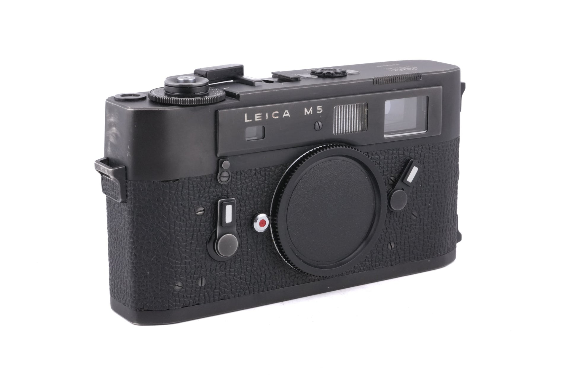 Manual focus M-mount 35mm rangefinder camera introduced by Leica in 1971. It was the first Leica rangefinder to feature built-in electronics and TTL metering and was the last Leica rangefinder built by hand in Wetzlar, Germany. It has a 0.72x magnification viewfinder with a 49.32mm baselength, which is longer than other Leica M models. The M5 featured many new design choices that set it apart from the earlier M cameras and has henceforth been subject to many love-hate responses from M camera enthusiasts. Metal body available in black (10502).