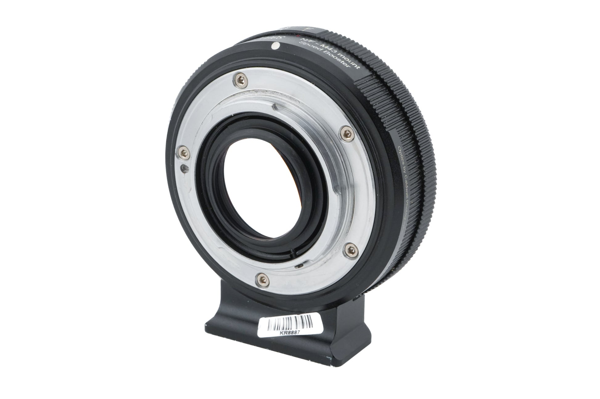 Adapter for mounting Nikon F(G) lenses to Micro Four Thirds mirrorless cameras. This speed booster allows a lens to give the same field of view and light transmission on the Micro Four Thirds camera as they would on a full-frame Nikon F camera. Metal body available in black.