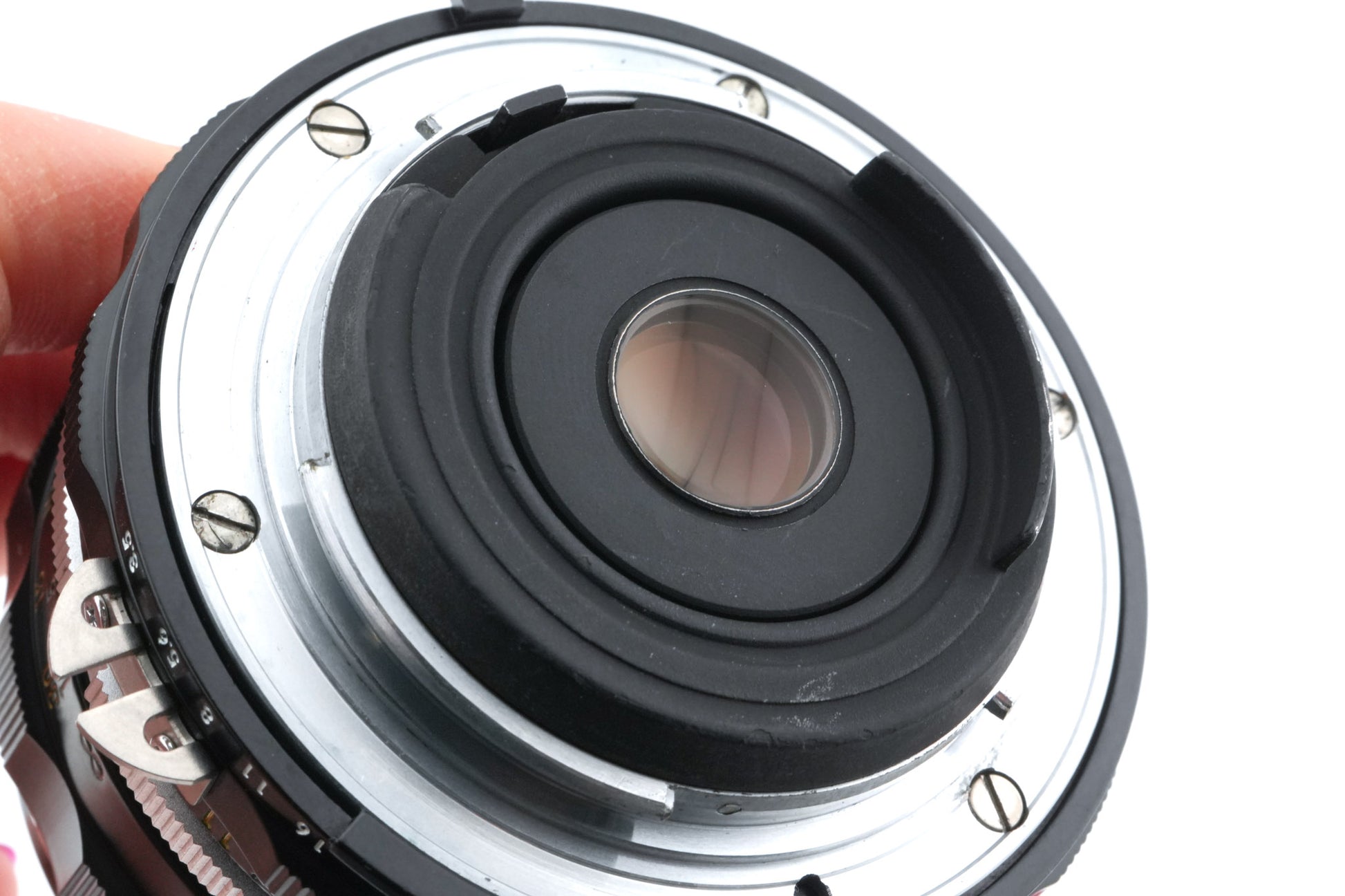 Manual focus wide angle lens made for F-mount 35mm SLR cameras introduced by Nikon in 1960. This is a Pre-Ai model that has been modified by Nikon or a previous owner to have the AI ridge as well. It will meter properly with all manual focus Nikon SLRs. Metal body available in black.