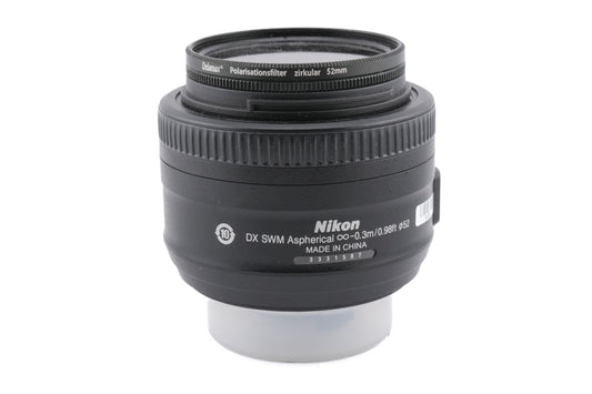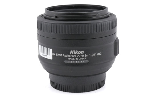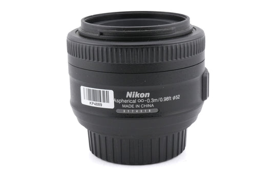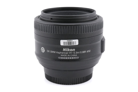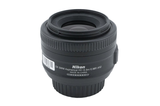 Autofocus normal lens made for DX-mount digital SLR cameras by Nikon. It gives the equivalent field of view to a 52.5mm lens on full frame/35mm. Plastic and metal body available in black.