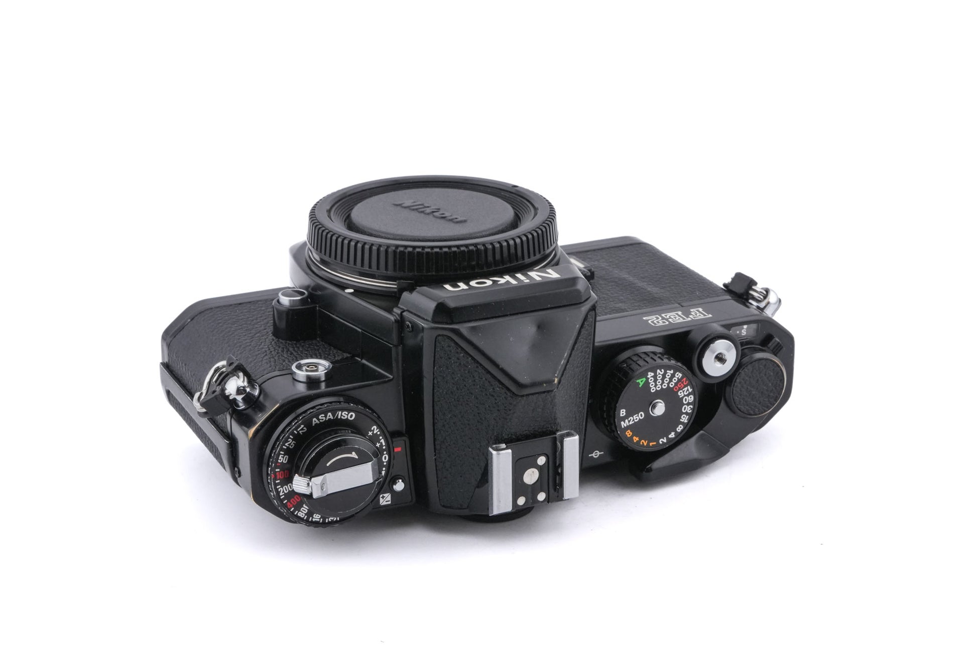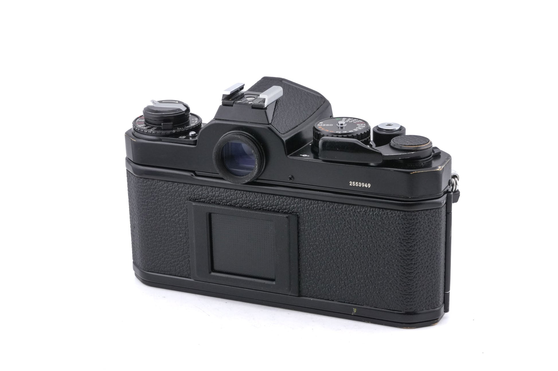 Manual focus F-mount 35mm SLR released by Nikon in 1983. The FE2 improved upon the FE by increasing the top shutter speed (1/4000s) and adding compatibility with certain TTL flashes. Metal body available in black and silver.