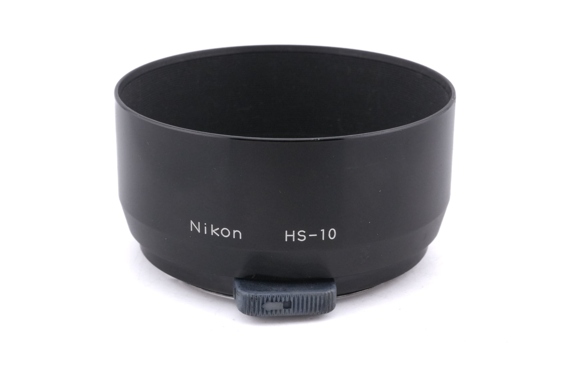 Lens hood made by Nikon for Nikon 85mm f2 / 105mm f2.5 lenses. Attaches via a snap-on thread mount. Fits all lenses with 52mm filter threads. Black metal and plastic body.