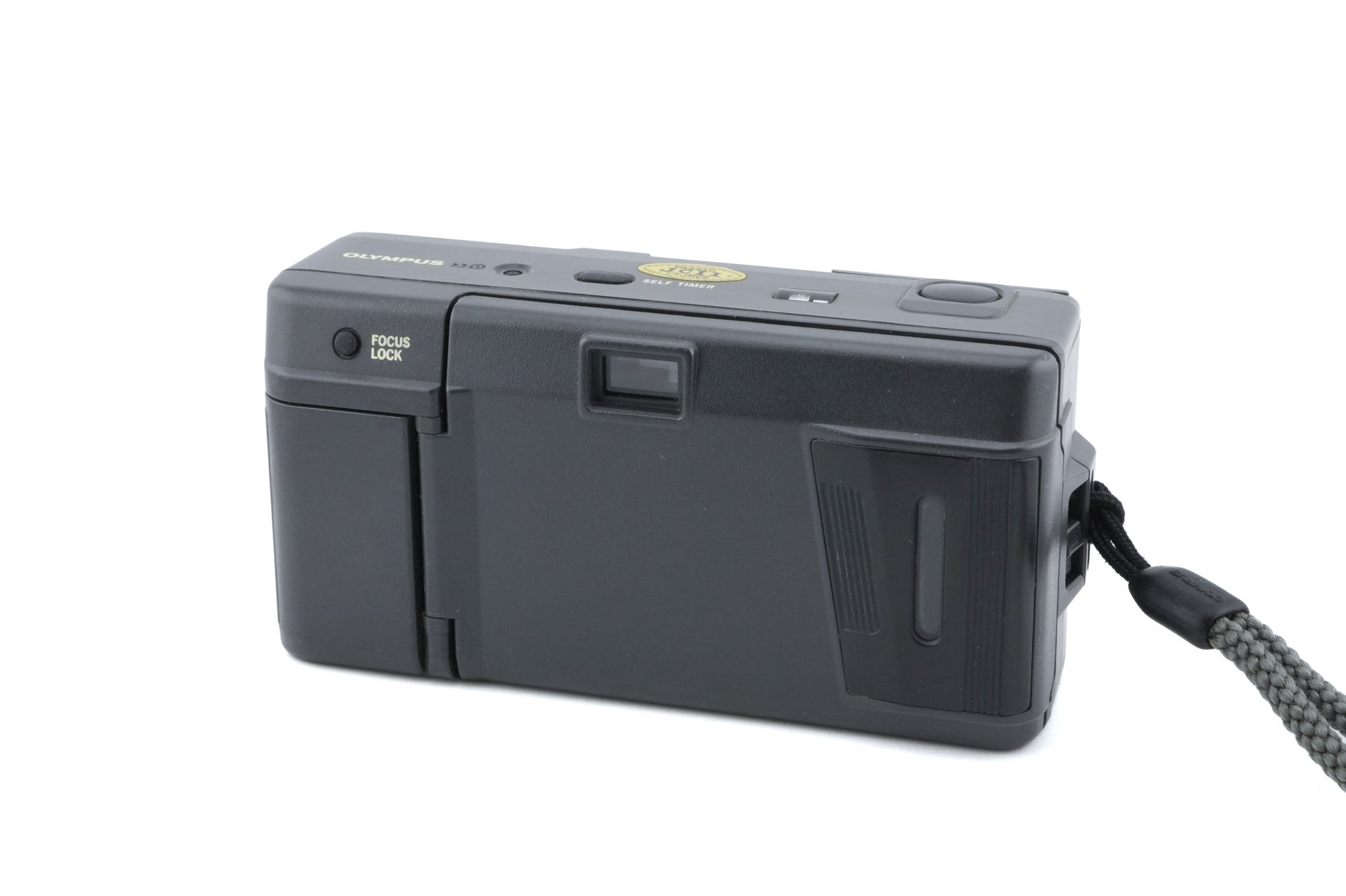 Autofocus 35mm point-and-shoot camera released by Olympus in 1986. It was the world's first weatherproof fully automatic 35mm compact camera. It has a built-in flash and a self-timer. Plastic body available in dark gray.