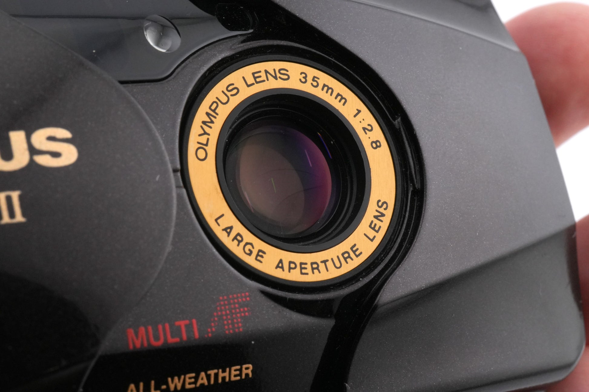 35mm autofocus point & shoot camera released by Olympus in 1997. In 1998 Olympus released a LIMITED edition burgundy color to mark 10 million sold units of Mju-II camera. Has a built-in flash with red-eye reduction and a self-timer with a 12-second delay. Is splash resistant. A version with a Quartz date back is also available. Plastic body available in black & champagne.