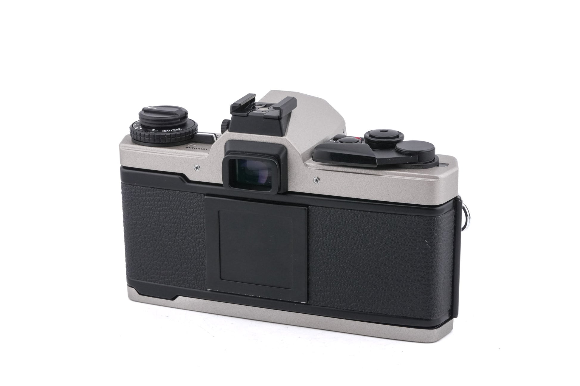 Manual focus OM mount SLR released by Olympus in 1986. The top and bottom plates are made of titanium and some weatherproofing was added compared to the original OM-4. Has a multi-spot metering mode that allows the photographer to take an average of up to 8 metered spots. Also known as the OM-4 T (NA). Titanium body available in champagne & black.