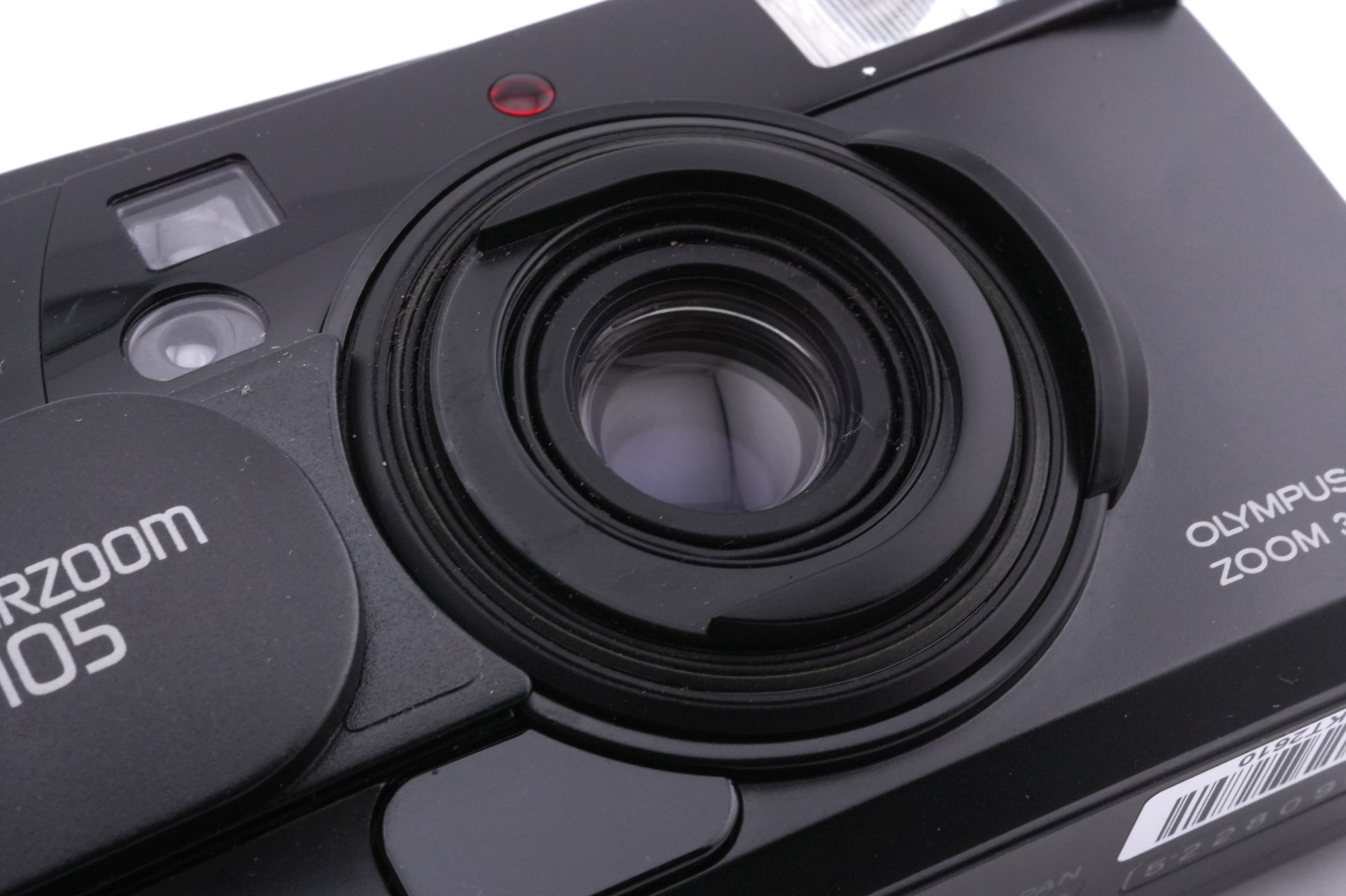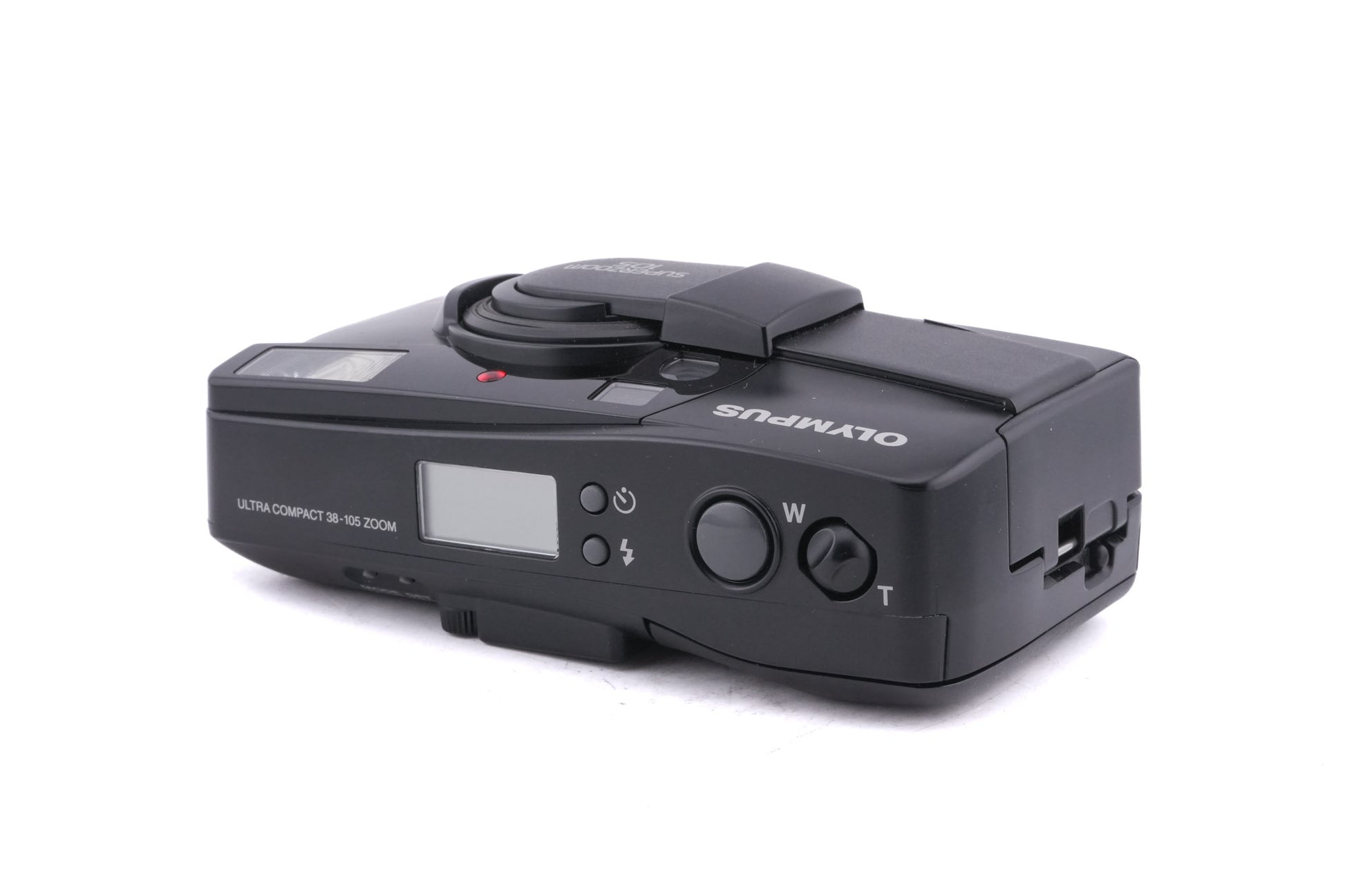 Autofocus 35mm point-and-shoot camera released by Olympus in 1996. It has a 3x zoom and a sliding lens cover. Plastic body available in black.
