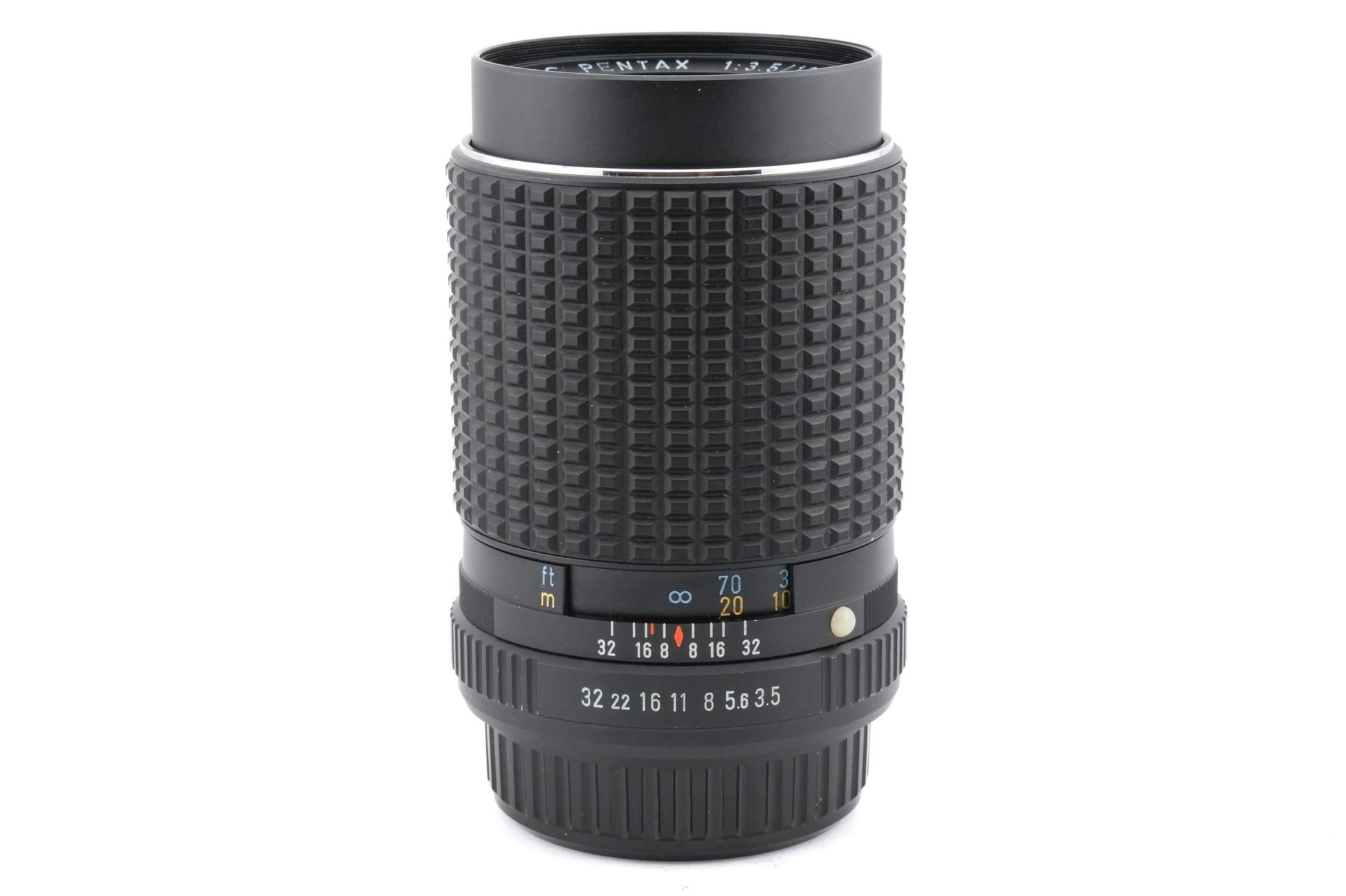 Manual focus short-telephoto lens made for K-mount SLR cameras by Pentax manufactured from 1975 to 1977. Metal body available in black.