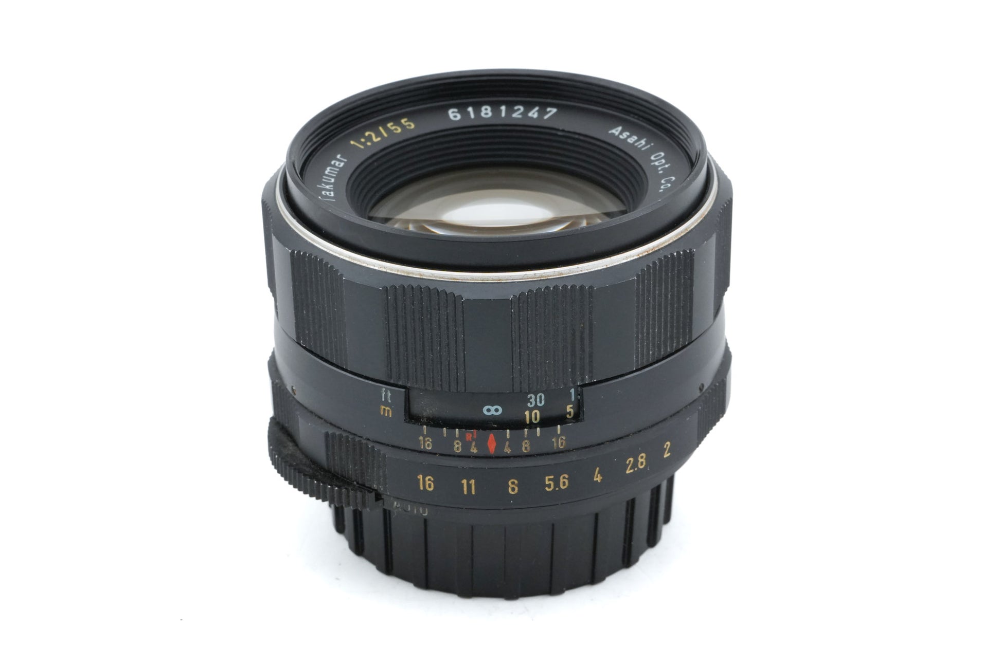 Manual focus normal focal length lens made for M42 screw mount SLR cameras by Pentax. Metal construction in black finish.