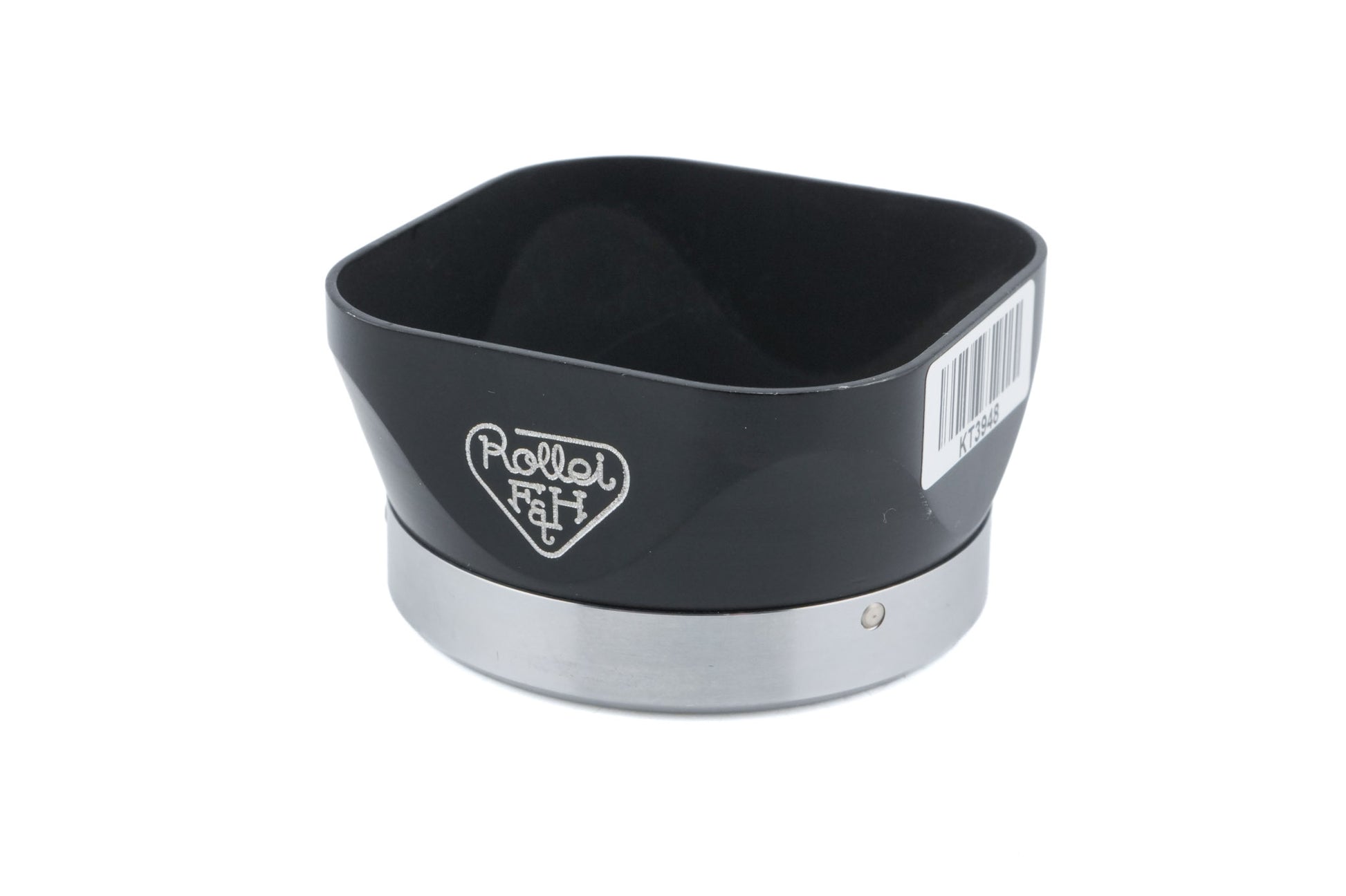 Lens hood made by Rollei for Bay 1 filter size TLR lenses. It helps prevent lens flare and blocks unwanted light from hitting the lens. Metal body available in black.