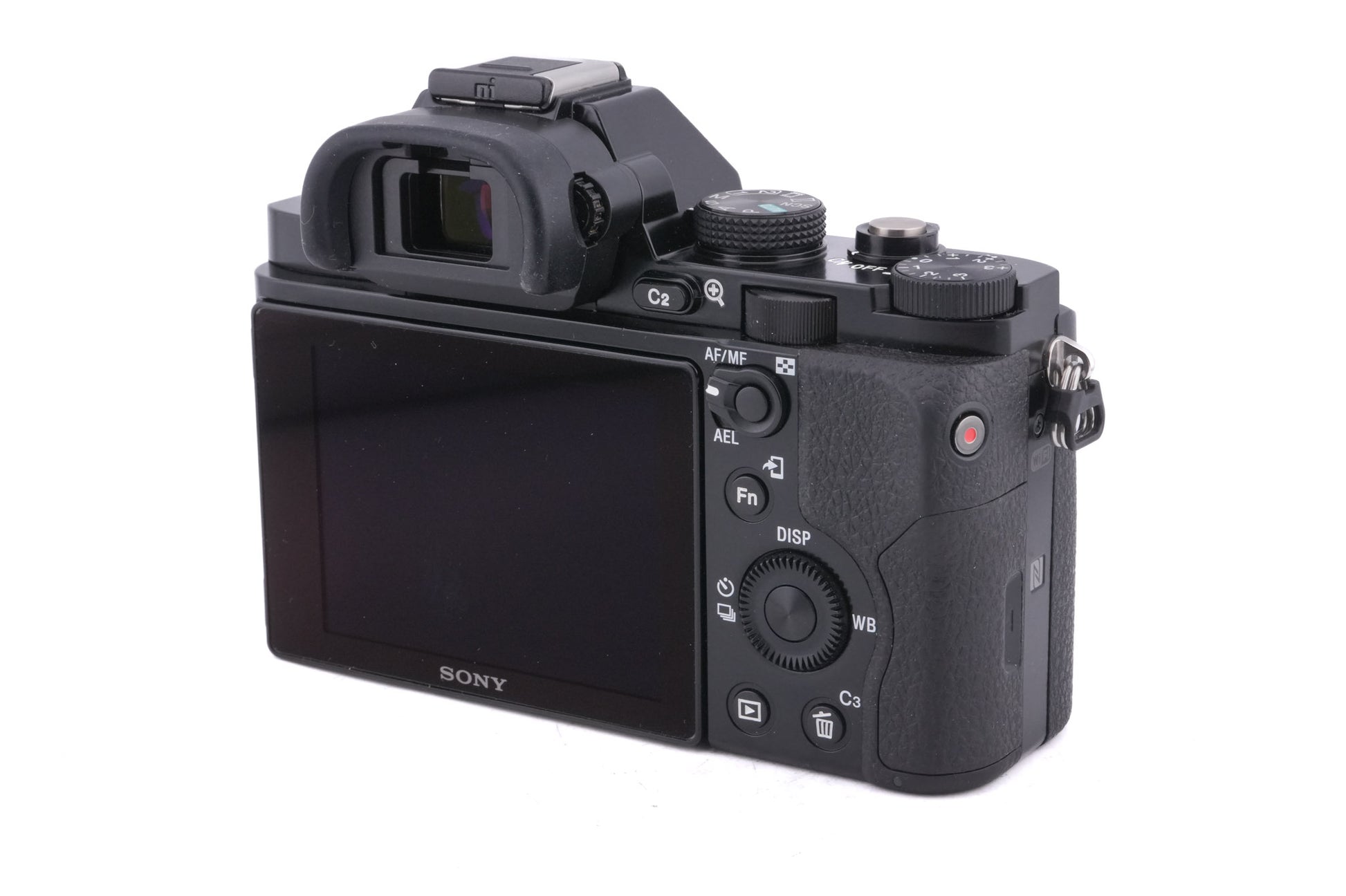 Autofocus FE-mount digital mirrorless camera released by Sony in 2013. This was their first full-frame digital mirrorless camera and can record 1080p video. Plastic body available in black.