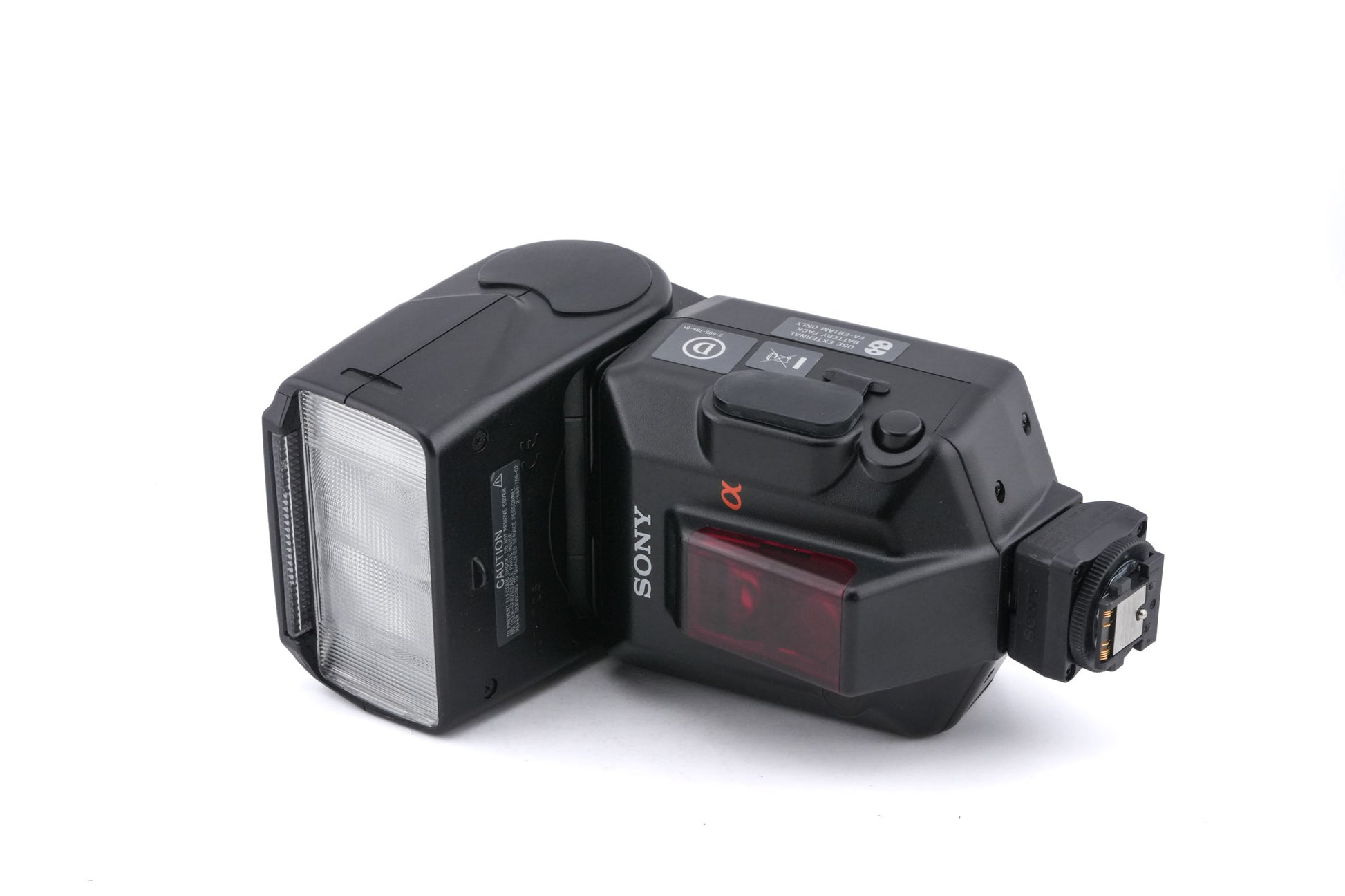 Flash made by Sony for A-mount cameras. Plastic body available in black.