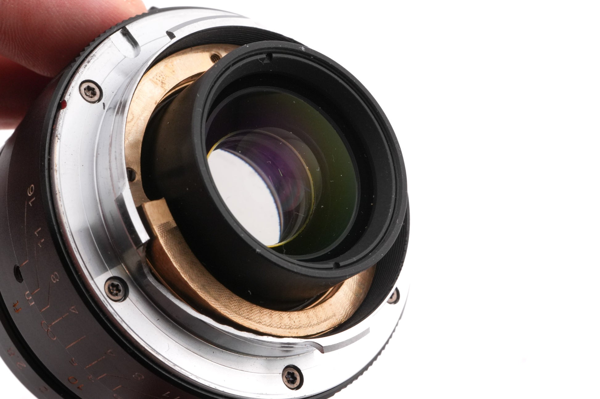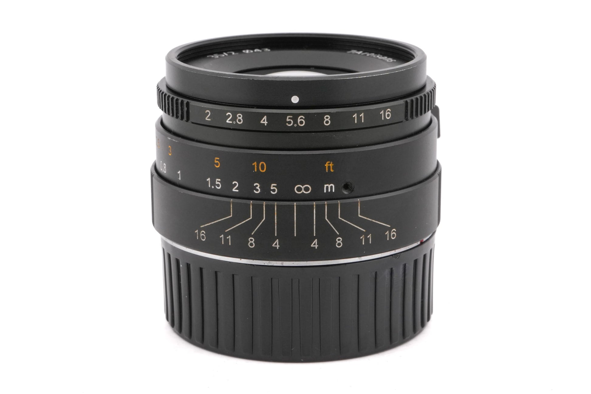 Manual focus semi-wide-angle prime lens made for Leica M mount rangefinder cameras by 7Artisans. Has a Sonnar-type optical design. Metal body available in black.