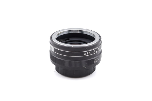 2x teleconverter made by APS for M42 35mm cameras. Doubles the focal length of the lens at the cost of halving the amount of light. Black metal body.