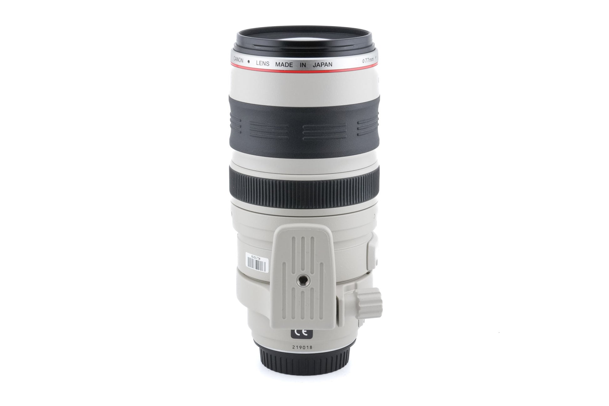 Autofocus telephoto zoom lens made for EF-mount SLR cameras by Canon starting in 1998. It is part of their L series of professional lenses. It was the first L-series zoom lens to feature image stabilization (IS), and it also uses Canon's Ultrasonic Motor (USM) for autofocus. The feel of the push-and-pull zoom function can be tightened or loosened according to user preference. Metal body available in white.