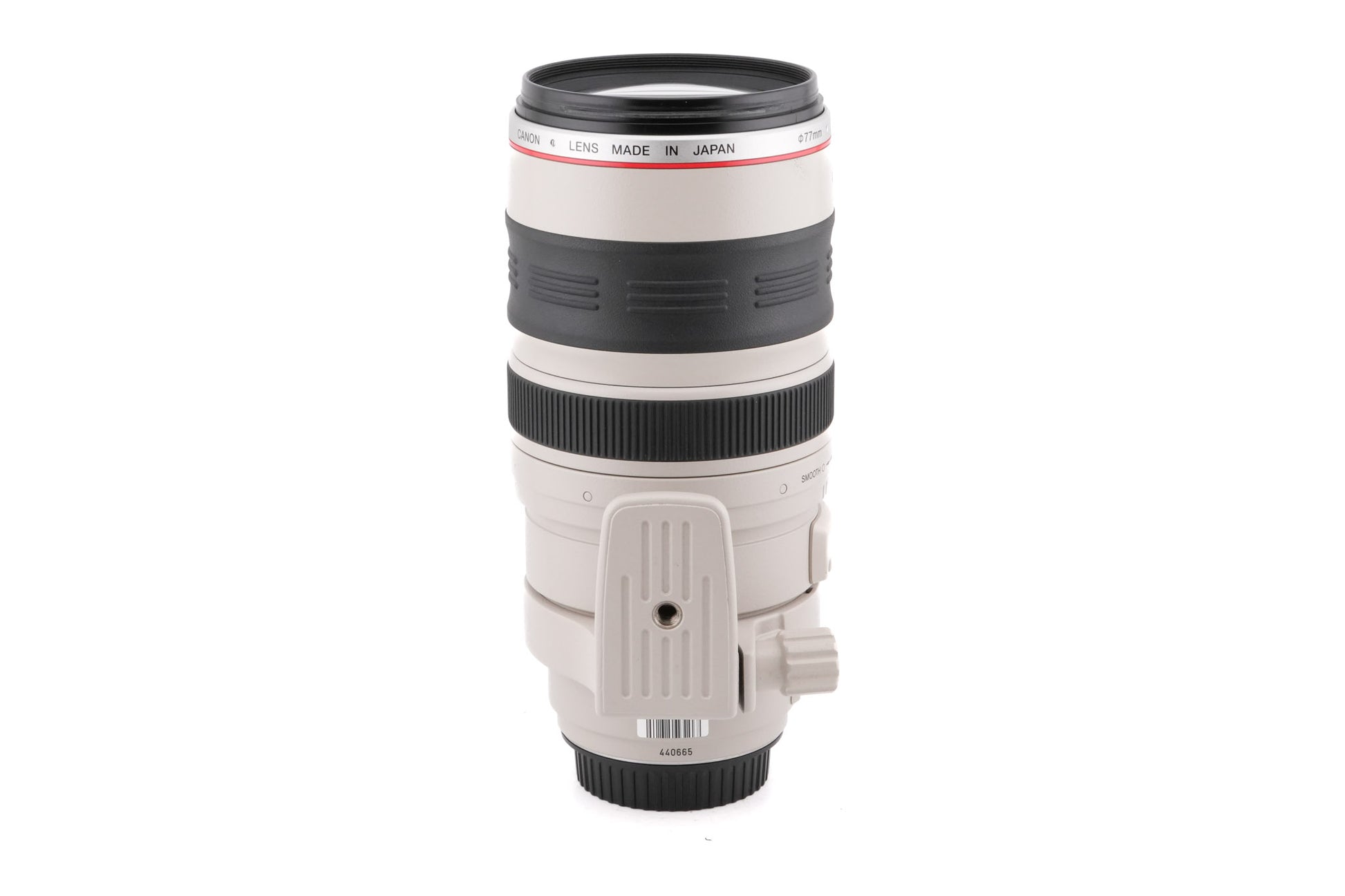 Autofocus telephoto zoom lens made for EF-mount SLR cameras by Canon starting in 1998. It is part of their L series of professional lenses. It was the first L-series zoom lens to feature image stabilization (IS), and it also uses Canon's Ultrasonic Motor (USM) for autofocus. The feel of the push-and-pull zoom function can be tightened or loosened according to user preference. Metal body available in white.