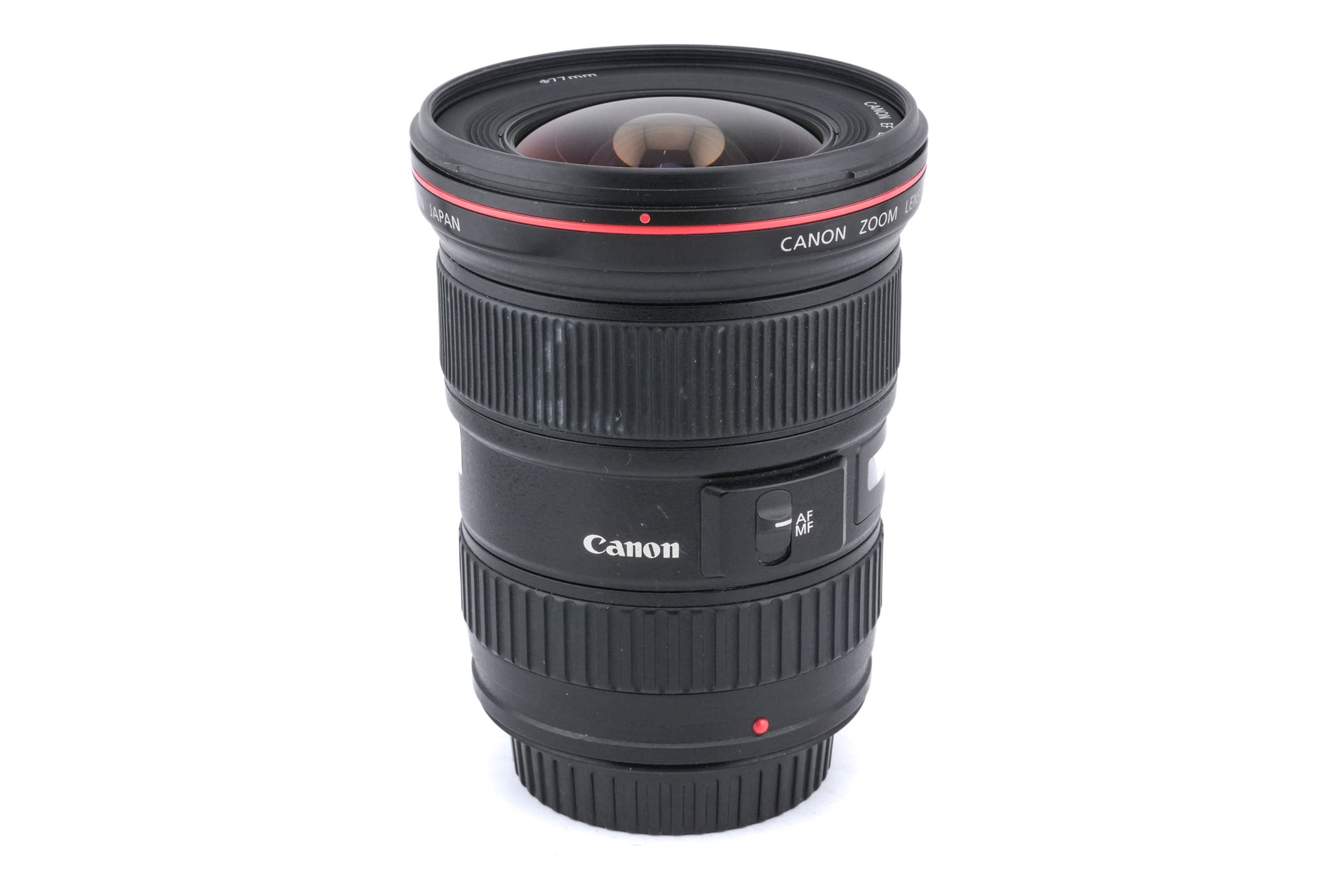 Autofocus wide-angle zoom lens made for EF mount SLRs by Canon starting in 2001. It is part of their L series of professional lenses and has a weather-sealing gasket. It also uses an ultrasonic motor (USM) for autofocus. Metal and plastic body available in black.