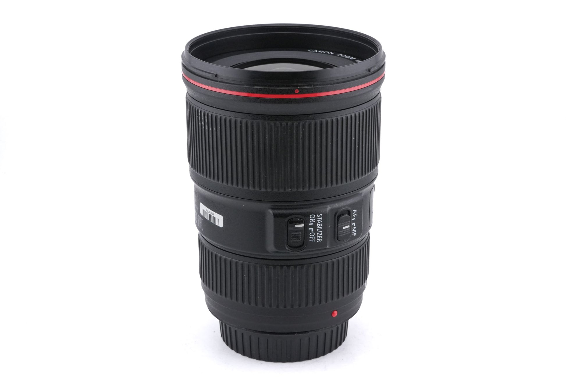 Autofocus wide-angle zoom lens made for EF-mount DSLR cameras introduced by Canon starting in 2014. It is part of their L series of professional lenses and features a weather-sealing gasket. It also has image stabilization (IS) and uses an ultrasonic motor (USM) for autofocus. Plastic body available in black.