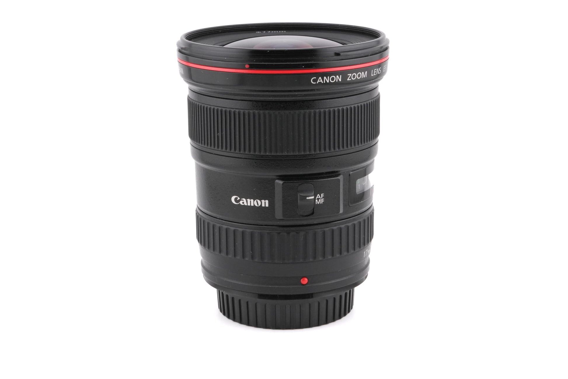 Autofocus wide-angle zoom lens made for EF-mount DSLR cameras by Canon starting in 2003. It is part of Canon's L series of lenses designed for professional use and has a weather-sealing gasket. It also uses Canon's ultrasonic focusing motor (USM) for autofocus. Plastic and metal body available in black.