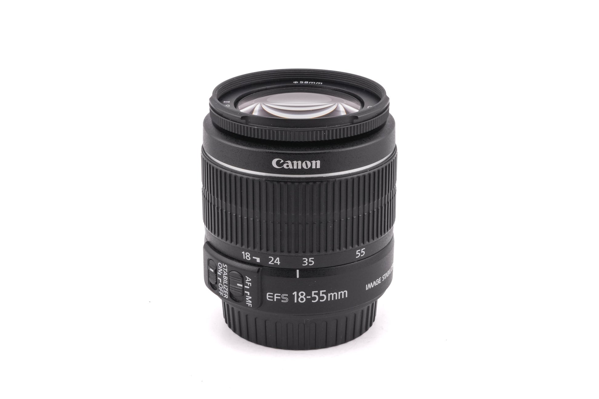 Autofocus zoom lens made for EF-S mount digital SLRs by Canon. It gives the equivalent field of view to a 27-82.5mm lens on full frame/35mm. This is the second EF-S kit lens that has image stabilization (IS). Plastic body available in black.