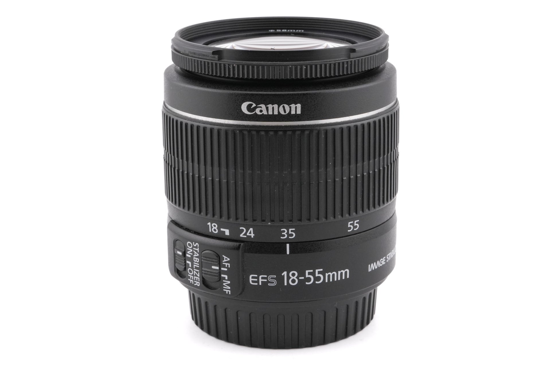 Autofocus zoom lens made for EF-S mount digital SLRs by Canon. It gives the equivalent field of view to a 27-82.5mm lens on full frame/35mm. This is the second EF-S kit lens that has image stabilization (IS). Plastic body available in black.
