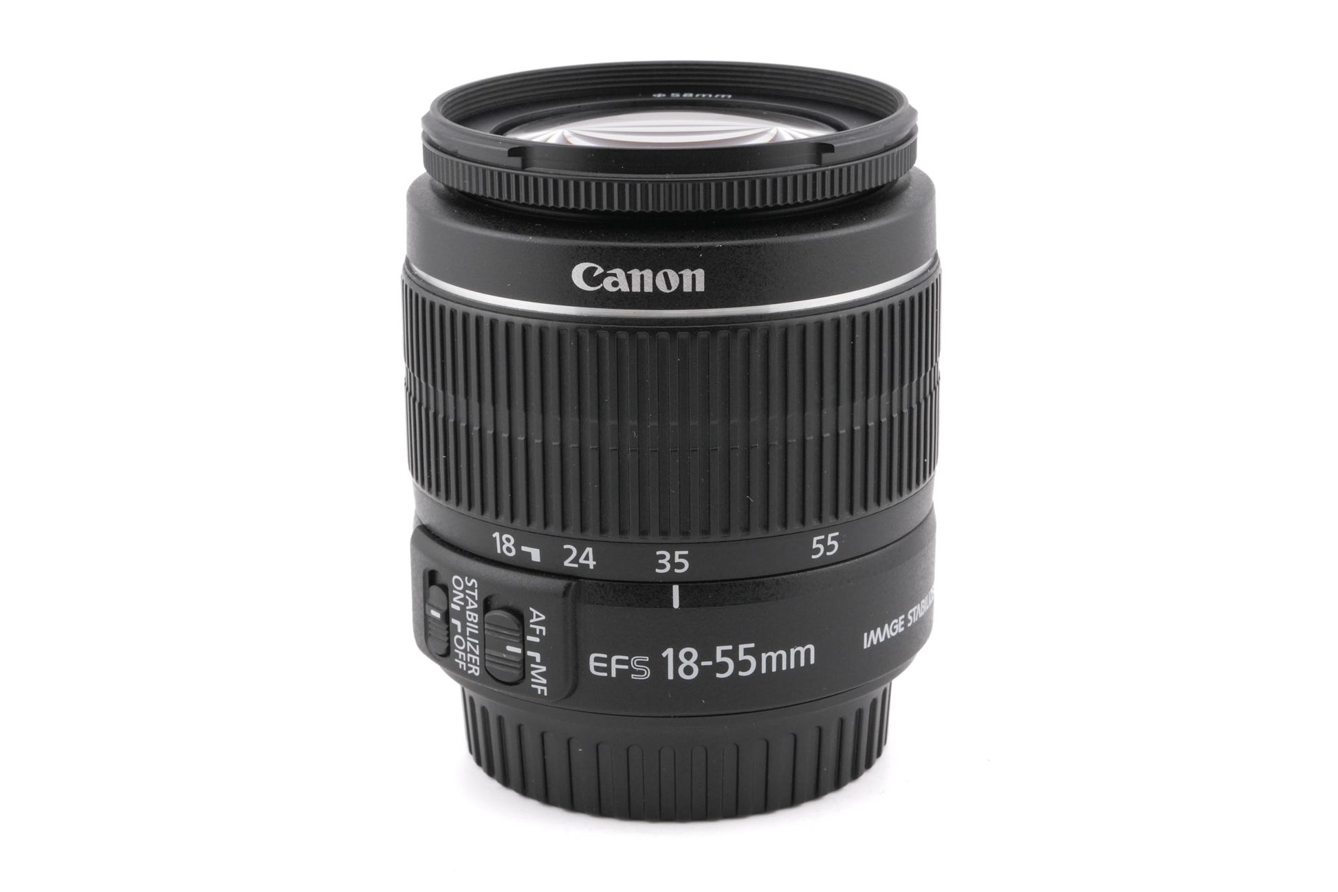 Autofocus zoom lens made for EF-S mount digital SLRs by Canon. It gives the equivalent field of view to a 27-82.5mm lens on full frame/35mm. This is the second EF-S kit lens that has image stabilization (IS). Plastic body available in black.