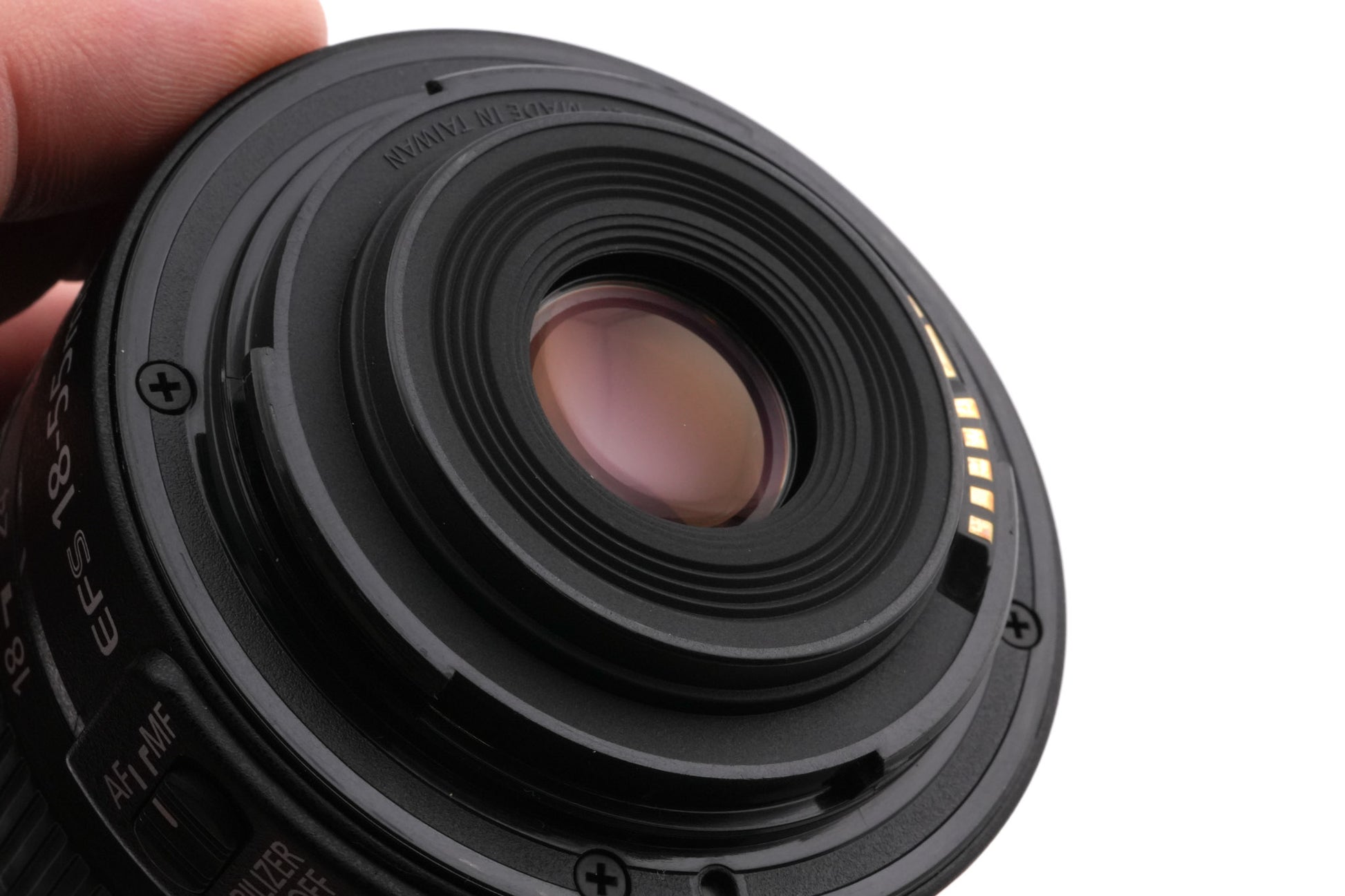 Autofocus zoom lens made for EF-S mount digital SLRs by Canon. It gives the equivalent field of view to a 27-82.5mm lens on full frame/35mm. This is the second EF-S kit lens that has image stabilization (IS). Plastic body available in black.